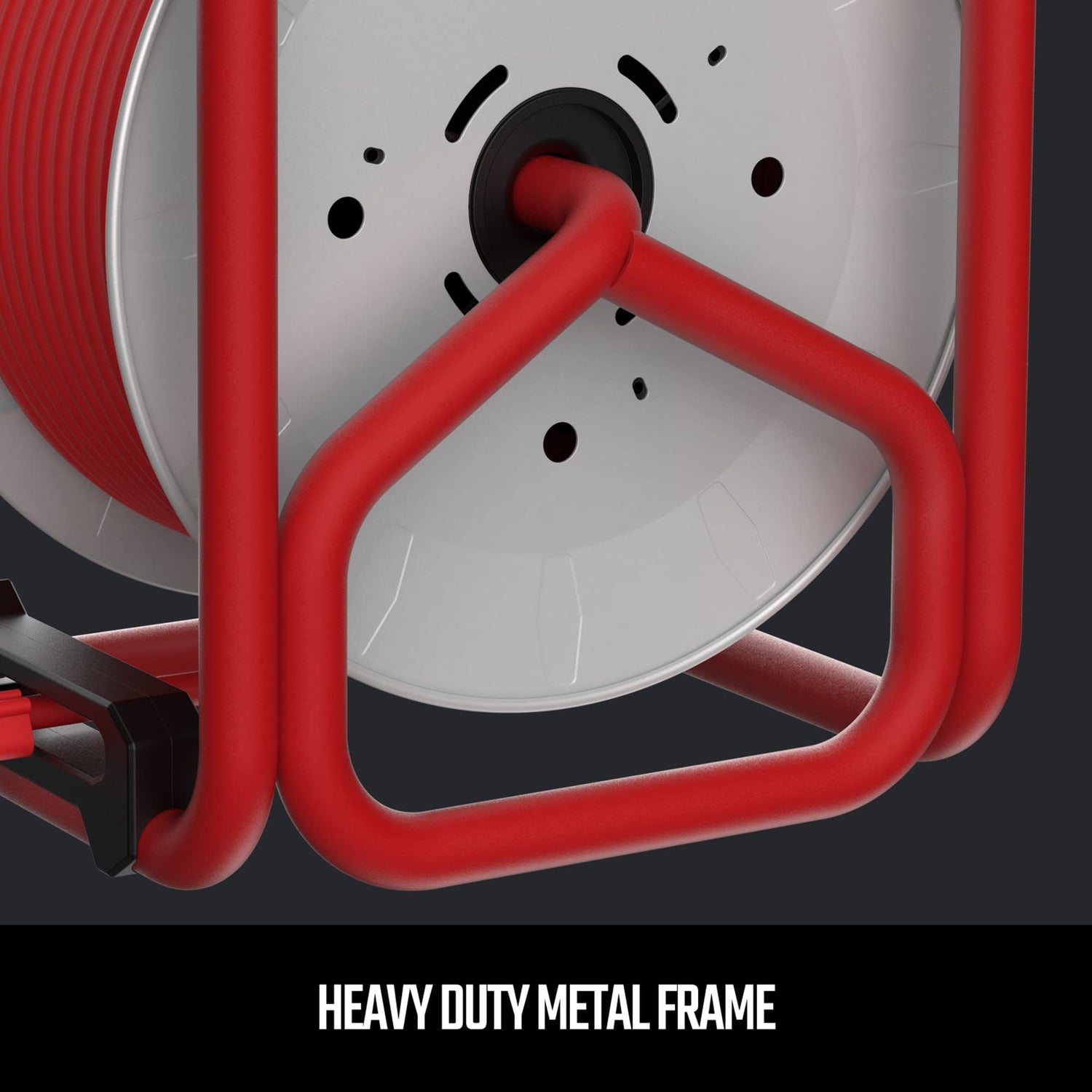 - Tangle-Free Cord Management: This retractable cord reel features a sturdy, easy-grip handle so that you can easily wind your extension cords and keep everything organized. It also includes an auto-locking system to keep the end of the cord in place.