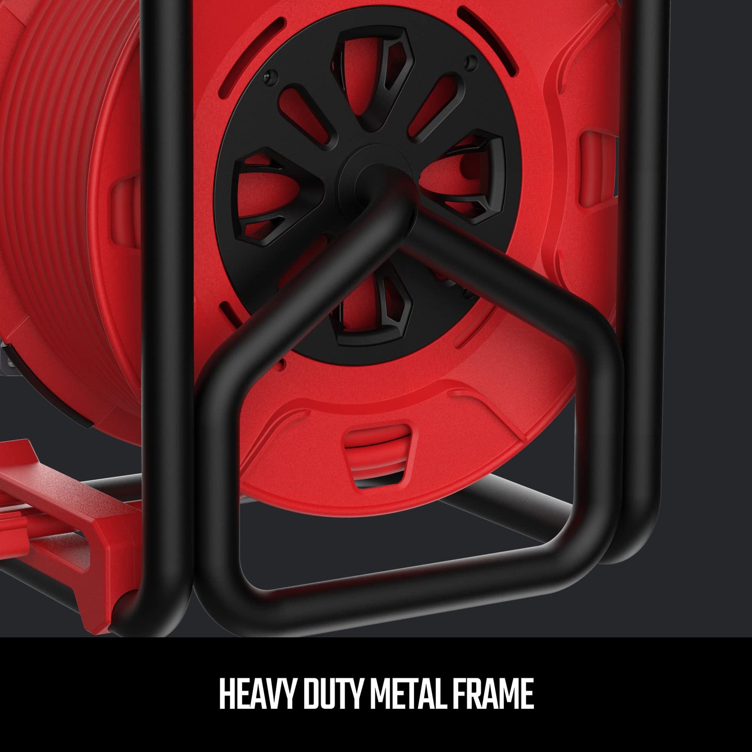 - Tangle-Free Cord Management: This retractable cord reel features a sturdy, easy-grip handle so that you can easily wind your extension cords and keep everything organized. It also includes an auto-locking system to keep the end of the cord in place.
