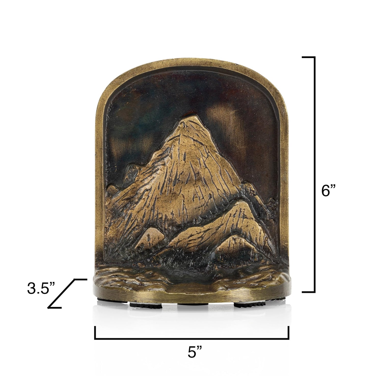 - RUSTIC ANTIQUE BRASS FINISH: Made from solid cast iron metal & given an antique bronze statue finish, our mountain range bookends have a vintage old-world charm to them.