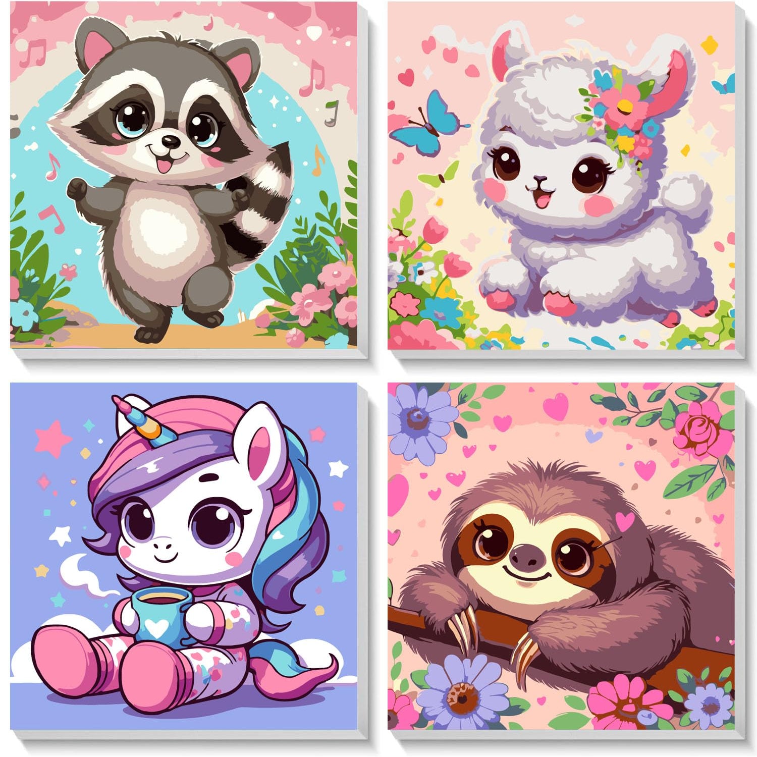 CraftyTime 4 Pack Framed Paint by Number for Kids Age 8-12 Kids, Cute Animals Paint by Numbers Kit for Beginners,Easy Acrylic Paint by Numbers Canvas Arts and Crafts for Wall Decor Gift 8x8in