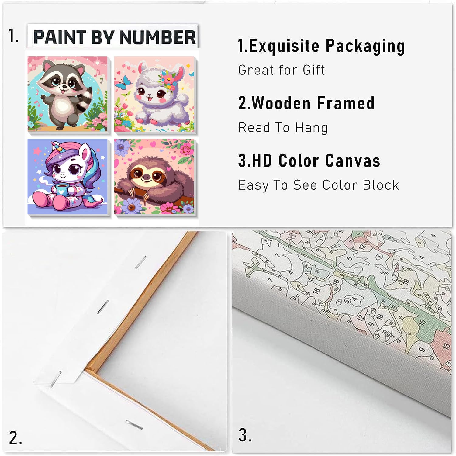 - 🦙PAINT BY NUMBERS FOR KIDS AGES 4-8-12: The kids paint by number comes with everything you need. Painting by numbers kit include pre-printed textured art canvas (Framed), 2 high-quality paint brushes, matched acrylic paints and nail hooks. Starting painting this PBN painting!