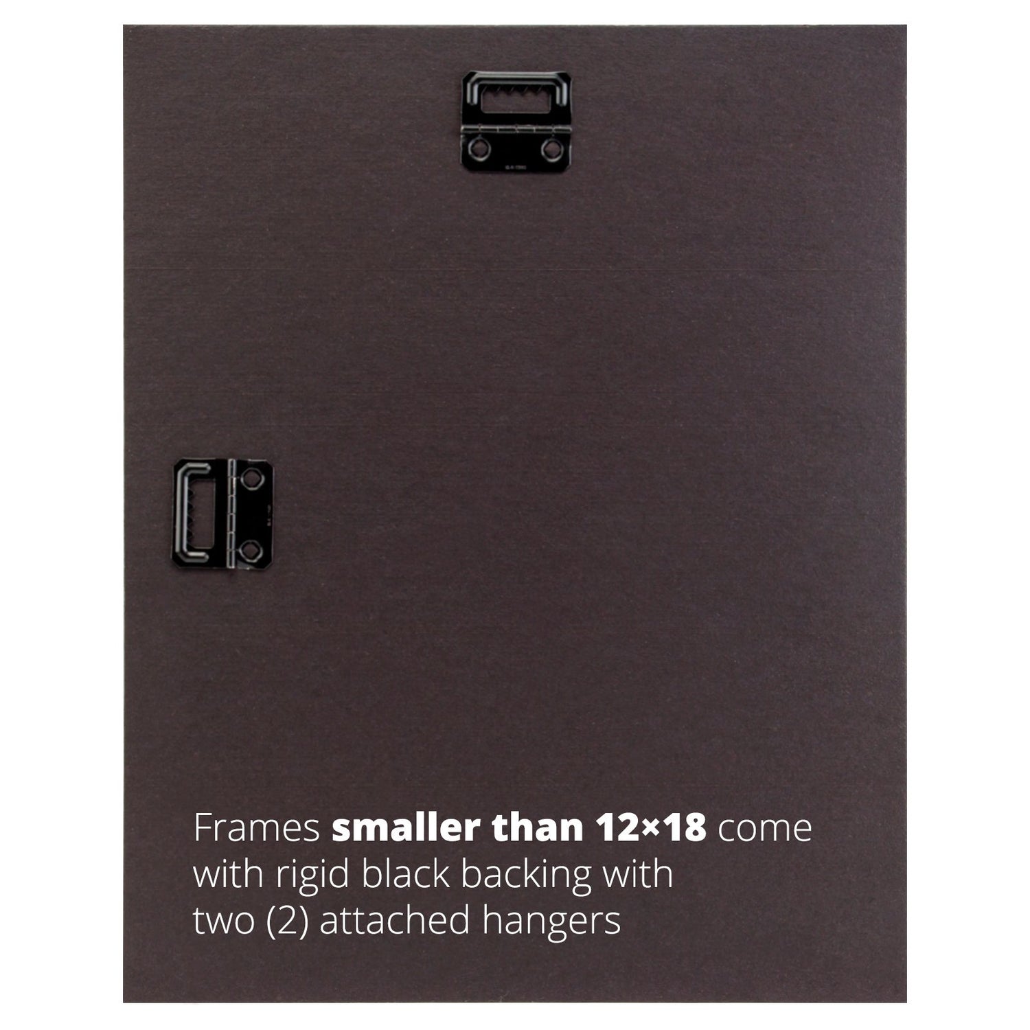 - Frame includes: white matting, glass, rigid black backing and pre-attached stamped hanging hardware