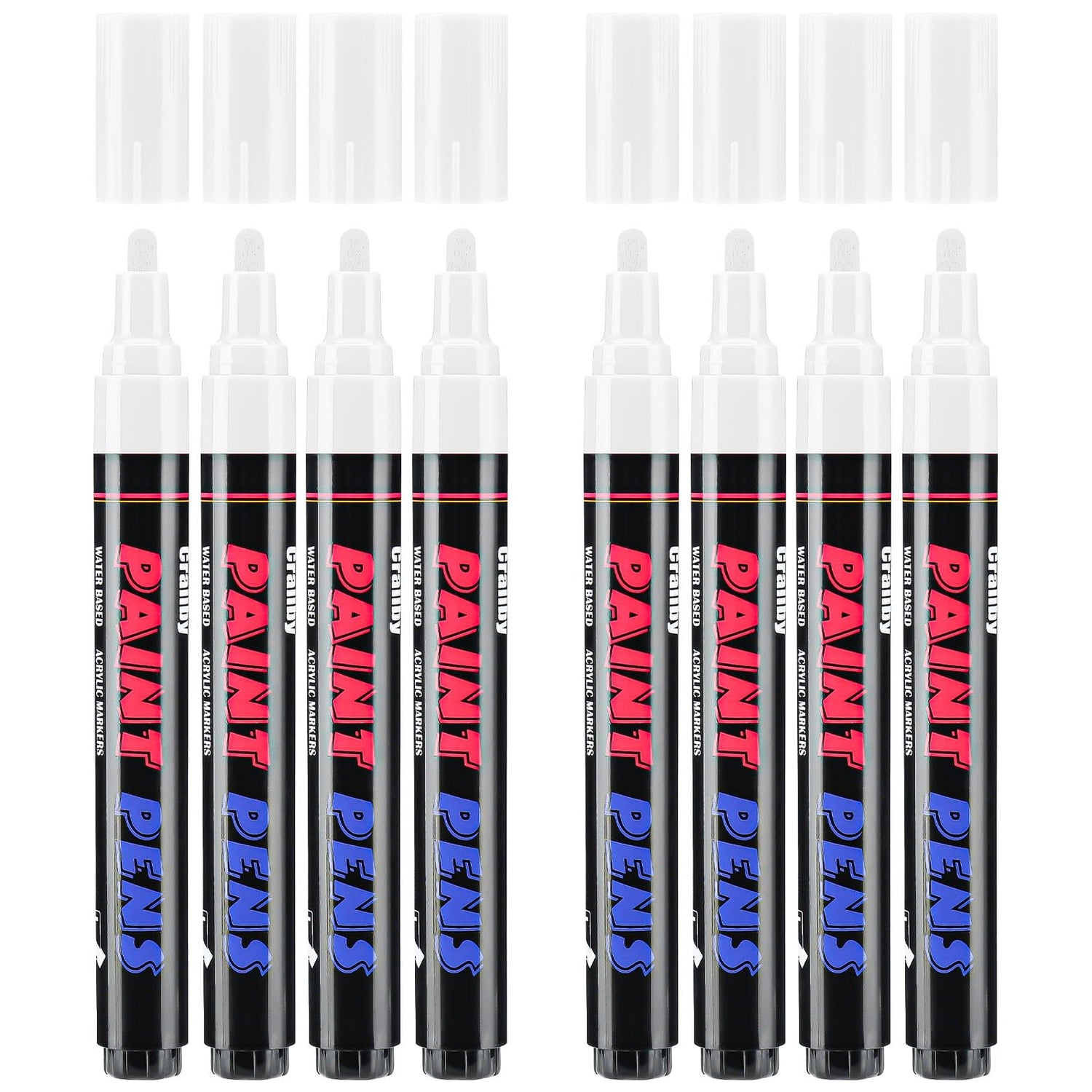 Craiiby White Paint Pens Paint Markers - 8 Pack Permanent Acrylic Quick Dry Waterproof Marker Pens for Rocks Wood Fabric Plastic Canvas Glass Mugs Metal Tire Stone