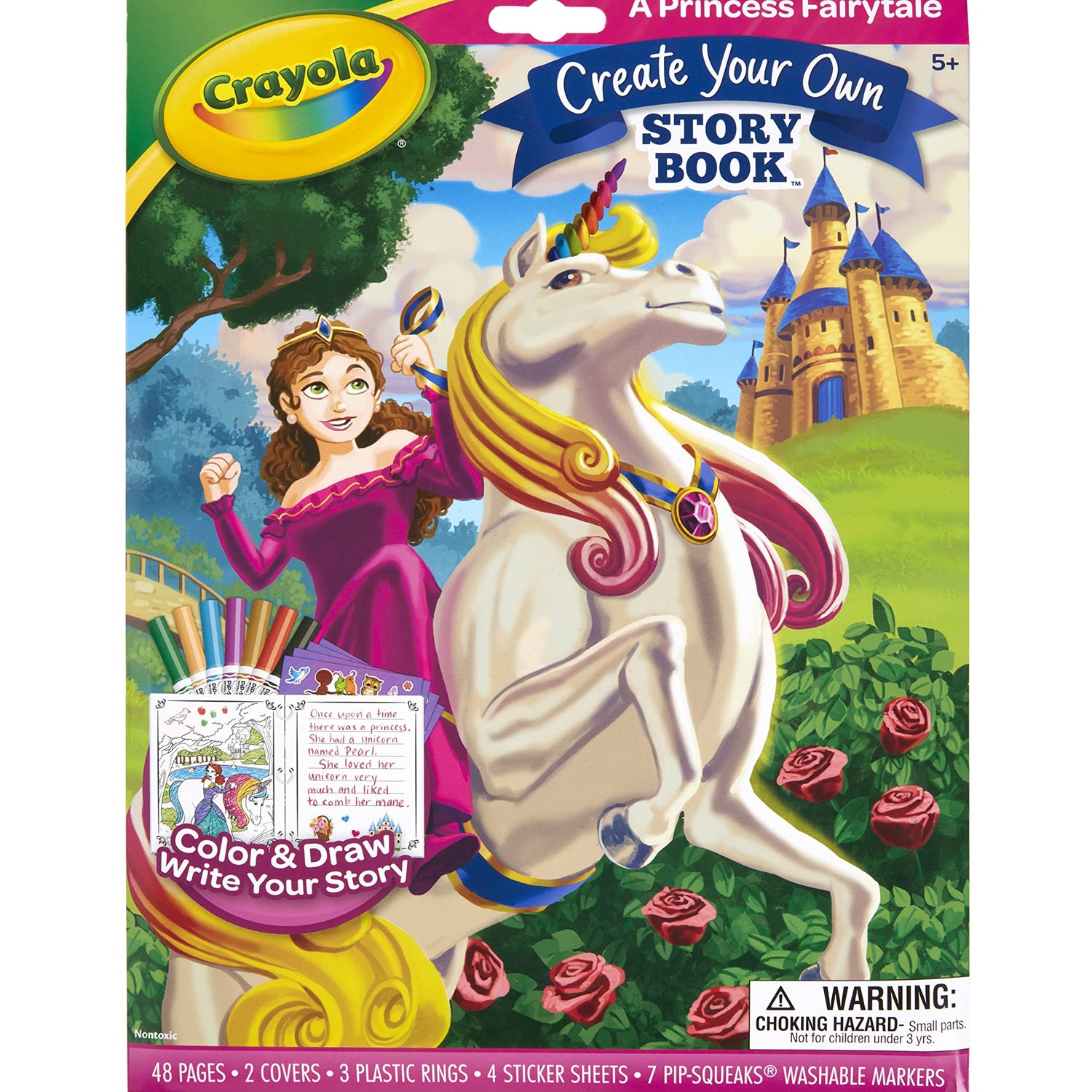 Details: Put your writers cap on with the Crayola Princess Fairytale Book Making Kit - an enjoyable, educational activity where craft meets storytelling! Inside, you'll find 48 pages and 2 covers, ready for your one-of-a-kind fairytale. We've also included 3 plastic rings for easy book assembly. Whether leading kingdoms or meeting fascinating characters, kids are inspired to create captivating princess tales. This hands-on experience enhances reading and writing skills and ignites a love for storytelling. Once the story is complete, make each page pop with our 4 sheets of fun stickers and 7 Pipsqueak Markers to decorate each lively scene. A great gift for girls and boys, this kit makes birthdays, holidays or any day special. Time to turn the pages of your imagination and create your own fairytale with Crayola!