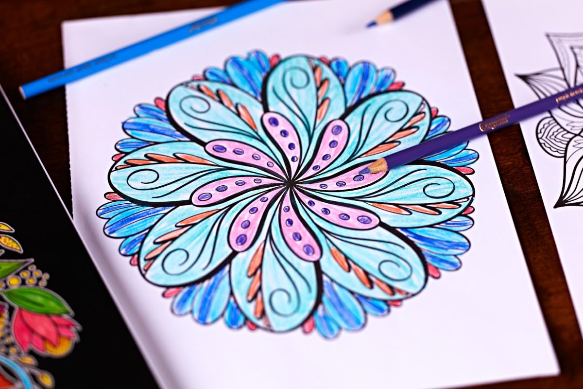 - CRAYOLA MANDALA ADULT COLORING BOOK: Features 40 Mandala Coloring Pages with beautiful geometric designs.