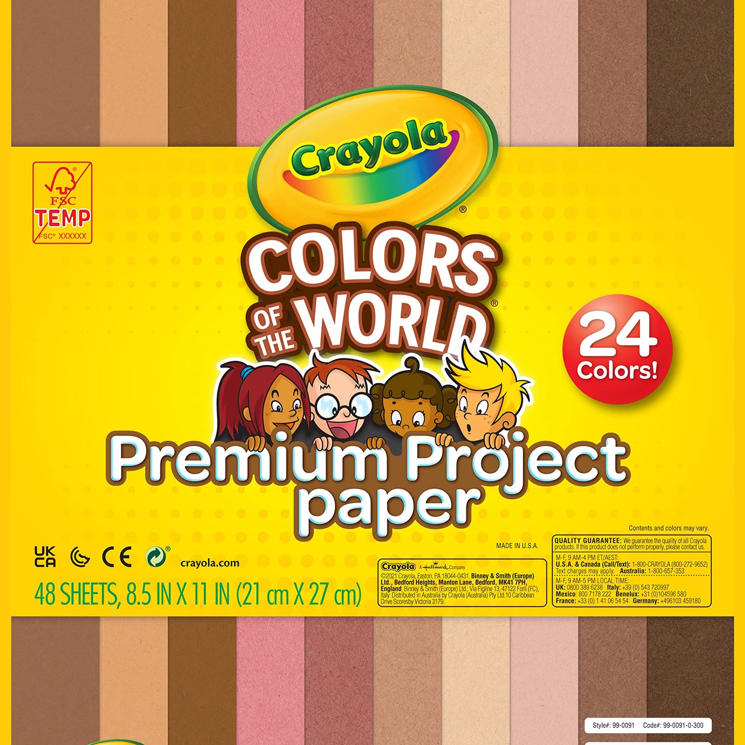 Details: Calling all Crayola Colors of the World fans!! This Crayola Construction Paper gives you the perfect color variety to pair with your favorite Colors of the World Crayons, Markers, and Colored Pencils (sold separately)! Each sheet of smooth, fade-resistant, premium construction paper uses longer and stronger fibers to create a heavyweight, high-quality surface finish. Not only does this mean longer-lasting works of art, it's also easy to fold, cut, score, and curl while resisting cracking and tearing. Plus Colors of the World Construction Paper colors are great for school projects and crafts at home! This pack includes 2 of each of the 24 colors, and each 8.5” x 11” sheet gives kids and adults the perfect creative space to express themselves!
