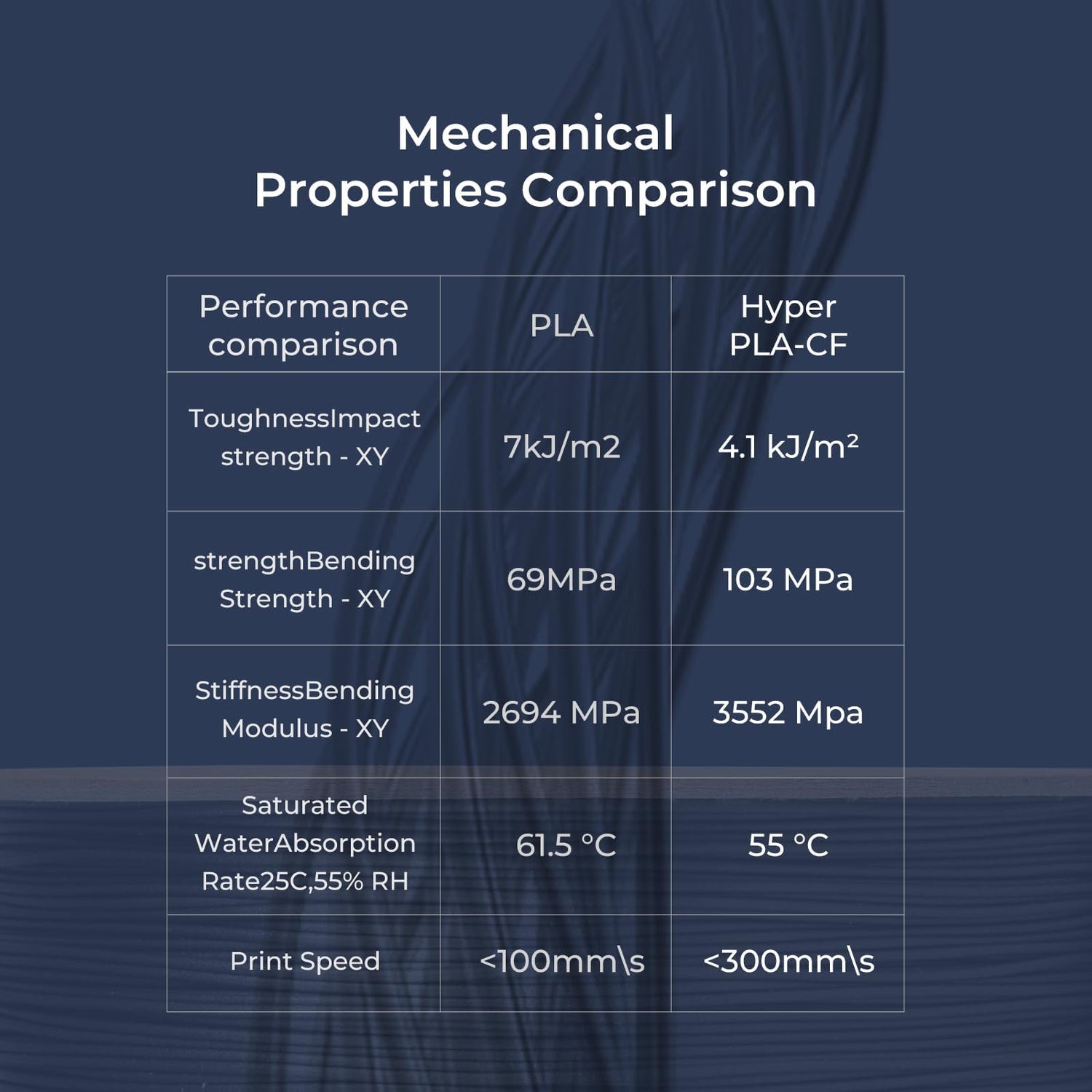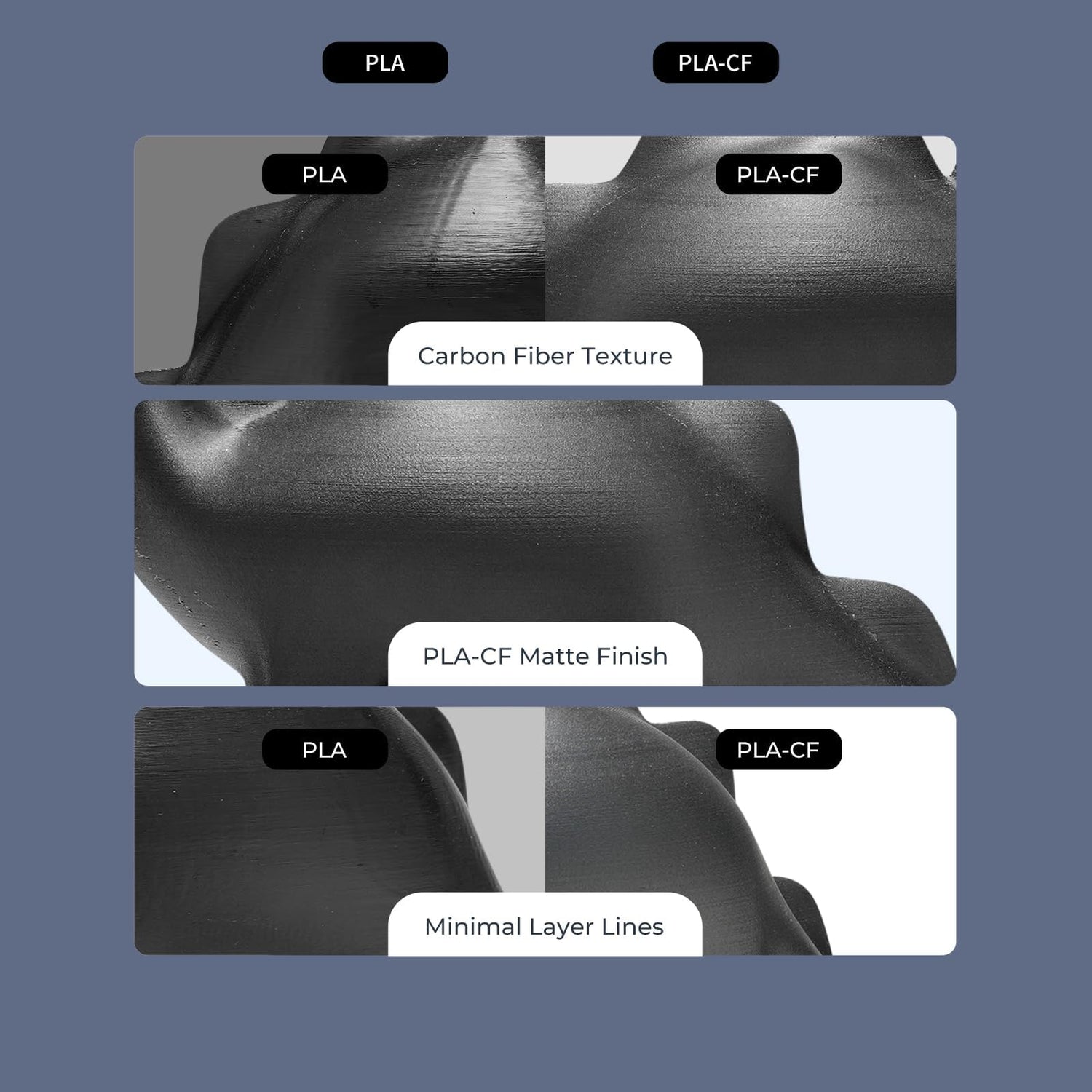 - HIGH STRENGTH and LAYER ADHESION - Perfect balance of strength, adhesion, and speed Creality PLA Carbon Fiber possesses 30% higher mechanical properties than PLA in terms of flexural strength, flexural modulus, and impact strength