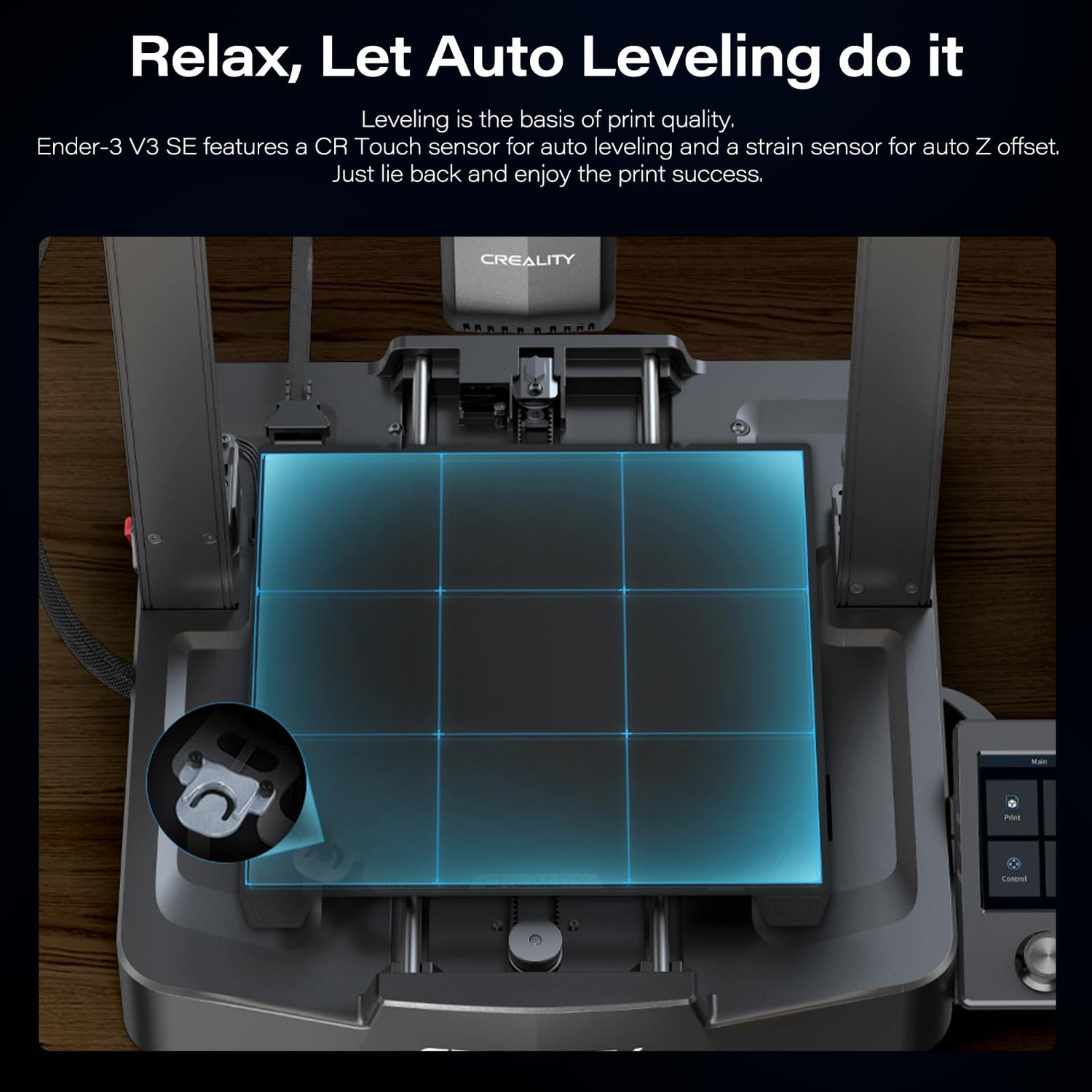 - 【Effortless Auto Leveling】With Ender-3 V3 SE’s CR Touch sensor for auto leveling and strain sensor for auto Z offset, achieving impeccable print quality is a breeze.