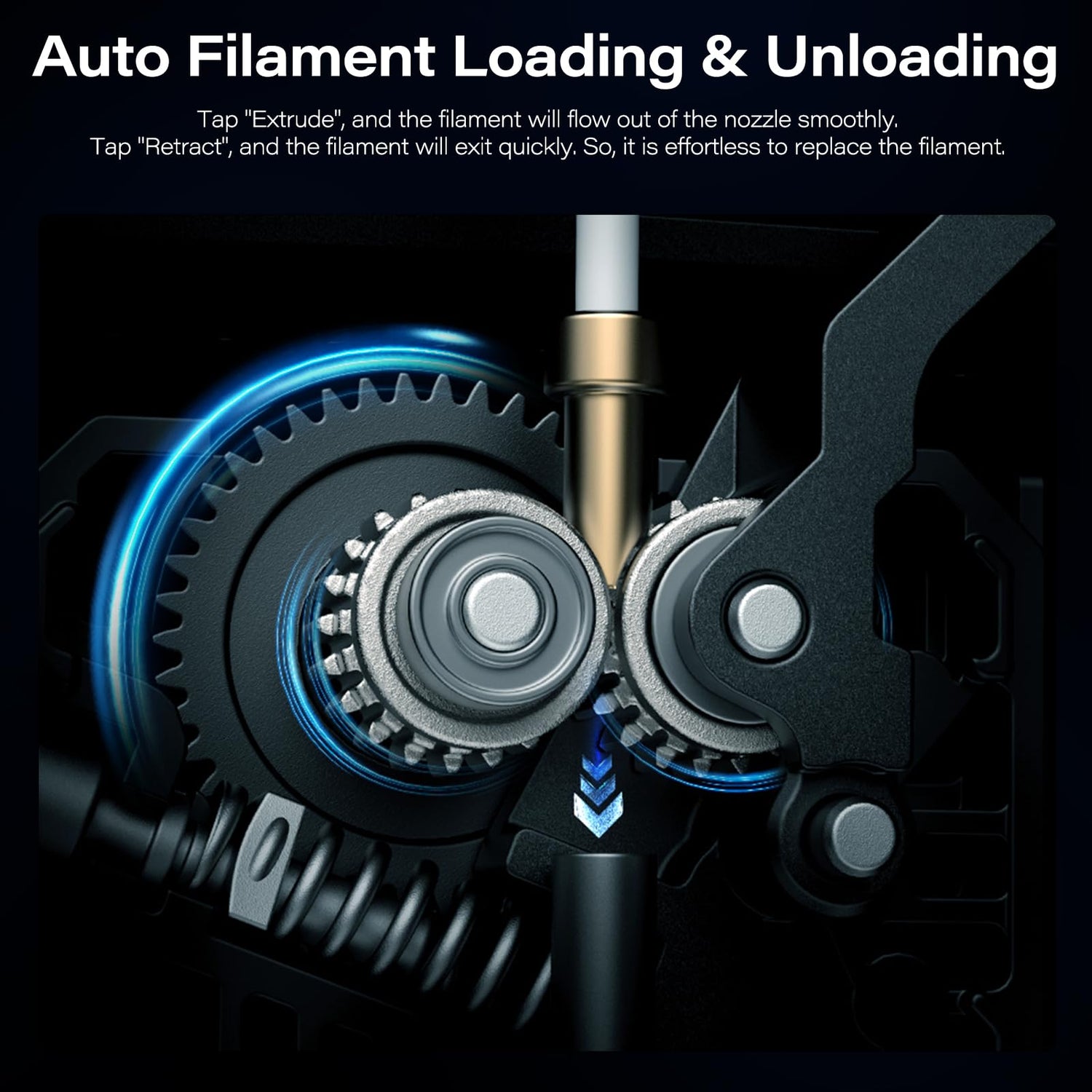 - 【Auto Filament Loading and Unloading】With one simple tap on “Extrude”, watch the filament effortlessly flow from the nozzle. Tap “Retract” and witness the quick retraction of the filament. Easily replace filament with absolute ease.