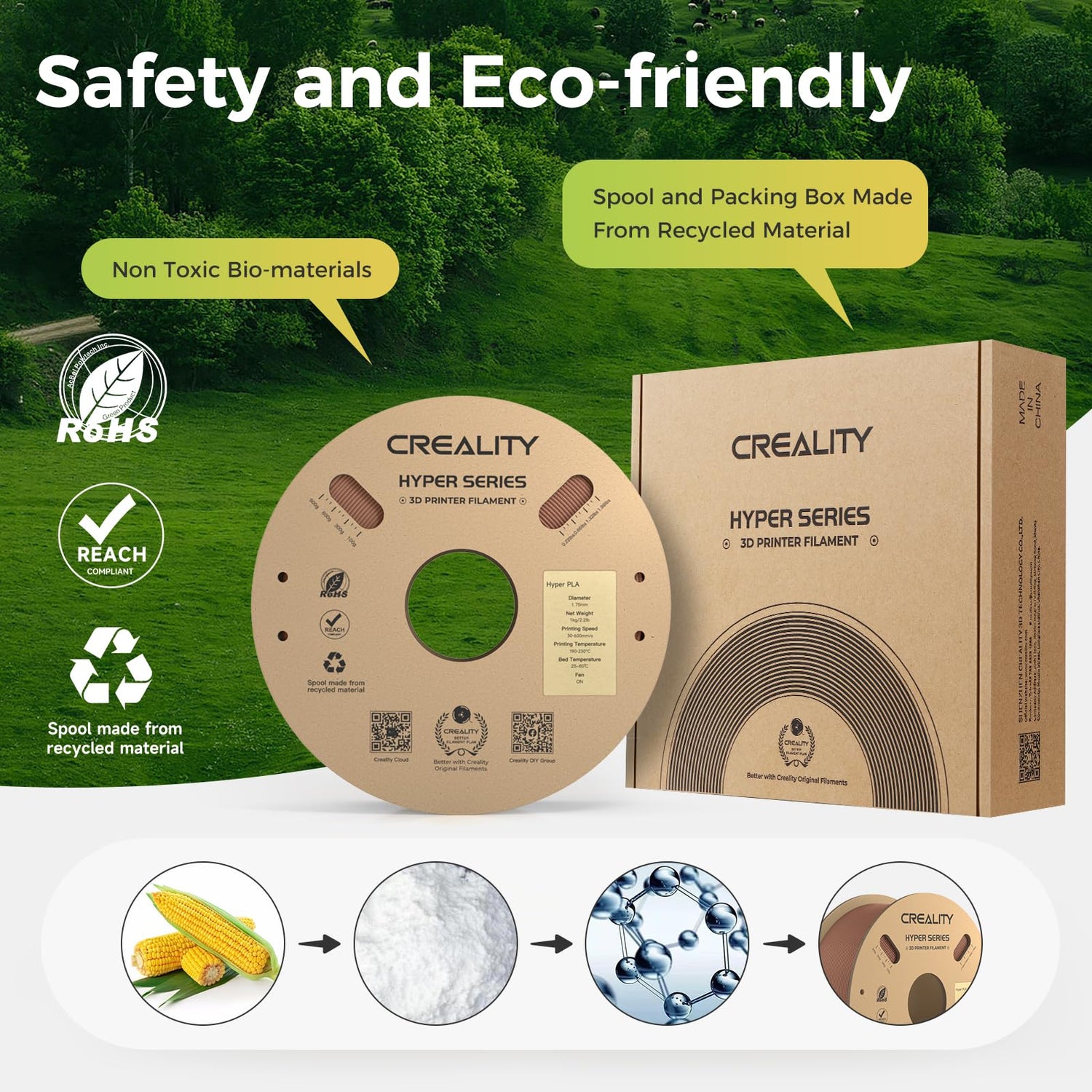 - 【Environmentally friendly】Hyper PLA Filament selects high-quality raw materials to provide excellent printing performance and printing effect. The packaging uses paper trays and environmentally friendly boxes, reducing carbon emissions.