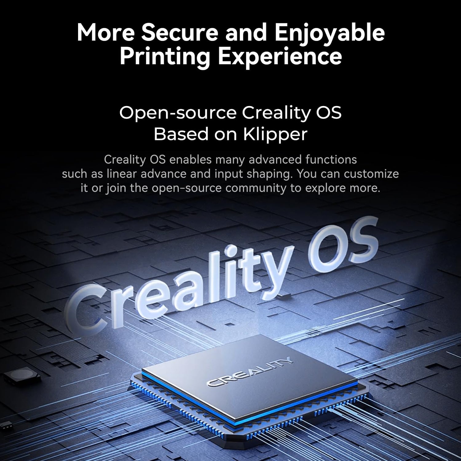 - 【Open-source Creality OS & Creality Cloud】Creality OS based on klipper, enables many advanced functions such as linear advance and input shaping. You can customize it or join the open-source community to explore more. Creality Cloud, a diverse, convenient, and interesting all-in-one 3D printing platform.