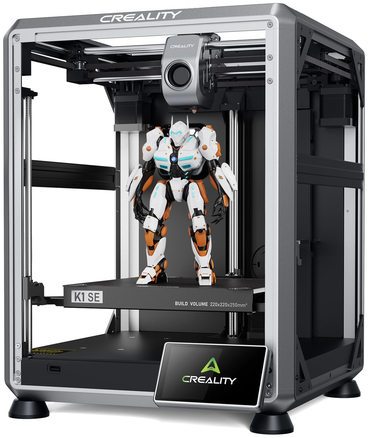 - 【Solid Frame Using Die Cast Parts】K1 SE has a rigid frame with aluminum alloy parts made by integrated die casting. It also features corner gussets and crossbeams on both sides to reinforce the frame. So, this creality 3d printer can operate steadily with minimal shaking.