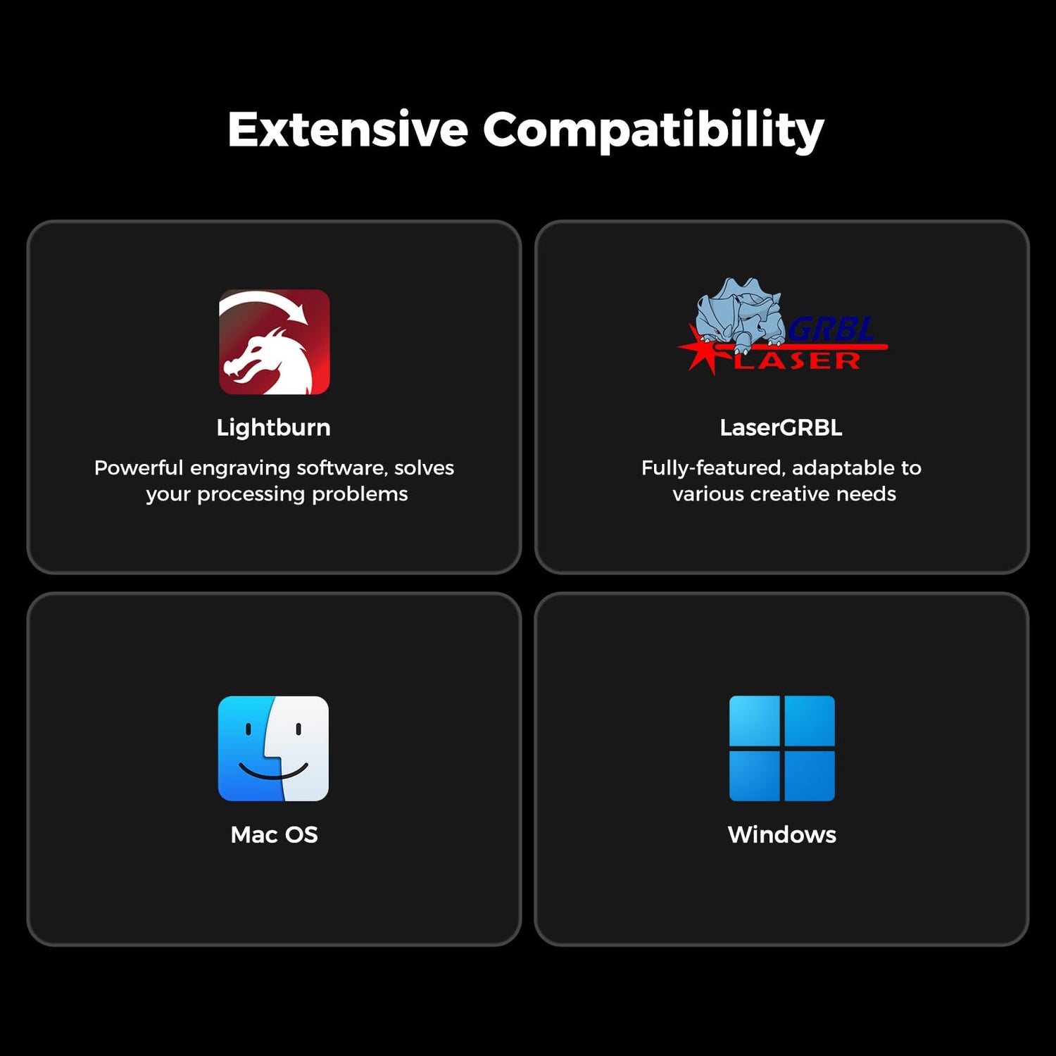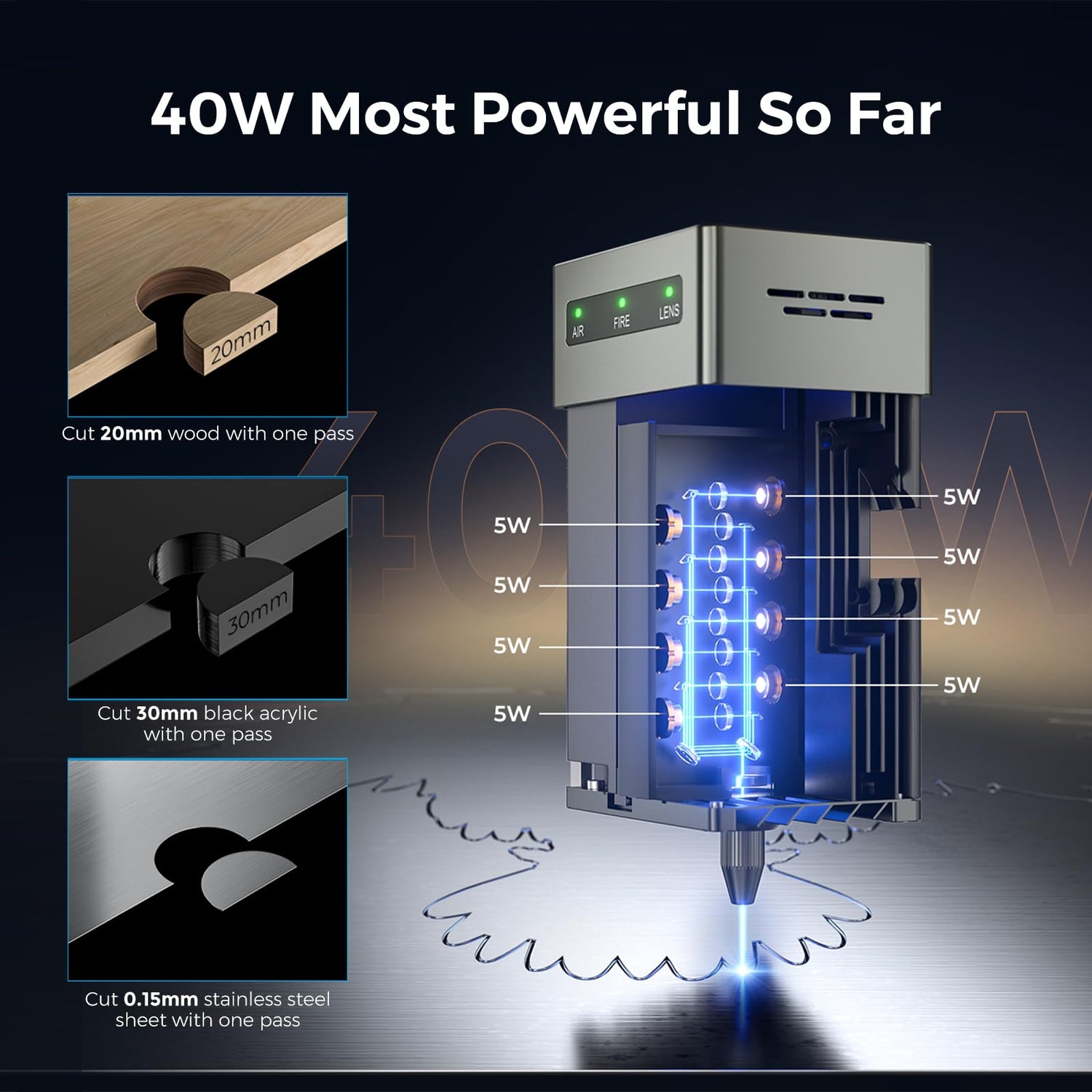 - 【Dual Laser Module for Competitive Performance】The Falcon 2 Pro 40W machine can effortlessly cut through 20mm wood and 30mm dark opaque acrylic in a single pass, saving you up to 50% of time compared to other machines. With a cutting speed exceeding 500mm/s and offers ultra-fine engraving outcomes with a extra 1.6W Light module, this machine offers precise engraving and cutting for a variety of materials, making it ideal for small businesses seeking high performance.