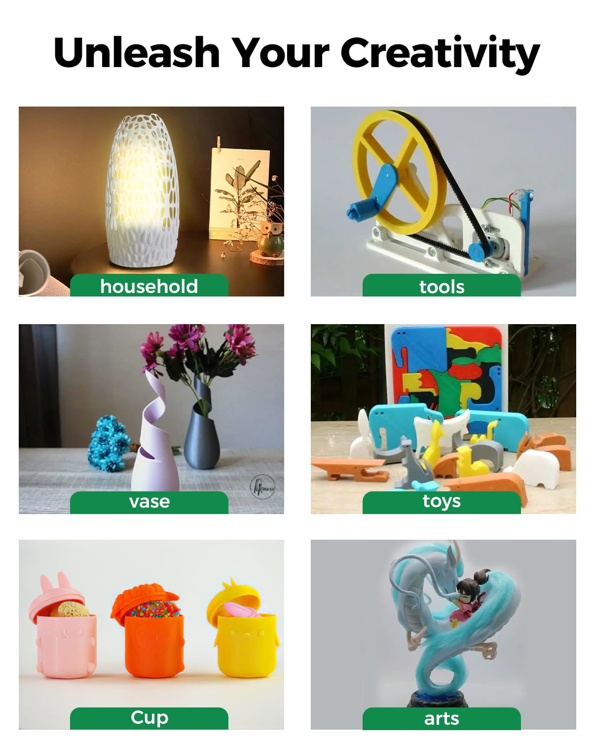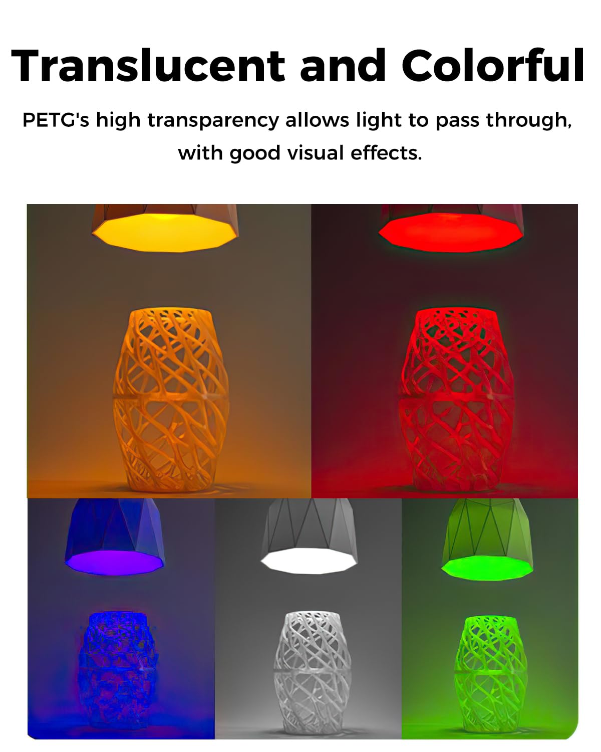 - 【Wide Compatibility】: Compatible with most 3D printers and 3D printing pens; 3D printer filament PETG is widely used; It is suitable for printing vases, gardening tools, lighting, arts, mechanical parts, etc