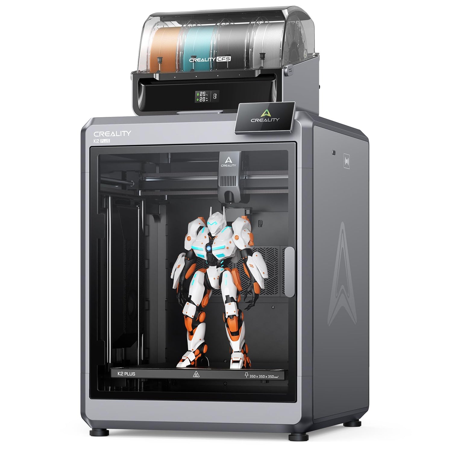 - 【Larger Size to Meet More Needs】As a pro-level 3D printing powerhouse, Creality K2 Plus offers an extraordinary 350*350*350mm build volume, great for handling larger objects or larger batches. It is the first desktop 3D printer that uses industry-grade FOC step-servo motors on all axis