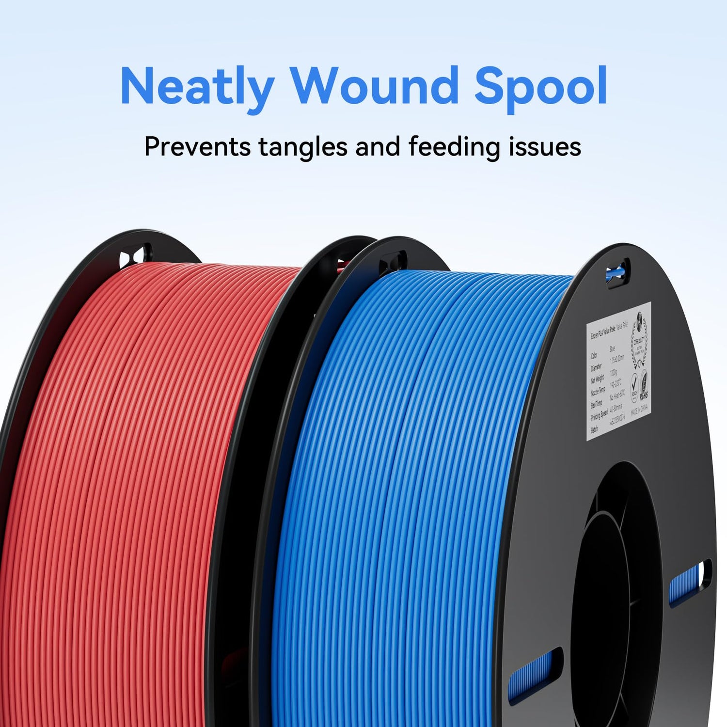 - Less-tangle and Toughness: Mechanical winding and inspection ensure neat, tangle-free pla filaments, reducing the chances of snapping and breaking; Larger spool design for smoother feeding and enhanced material durability