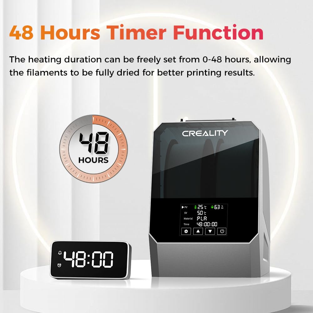 - 【48 Hours Timer Function】The 3D printer filament dryer’s heating duration can be freely set from 0-48 hours, allowing the filaments to be fully dried for better printing results. Keep your filaments dry and free from moisture for consistent high-quality prints