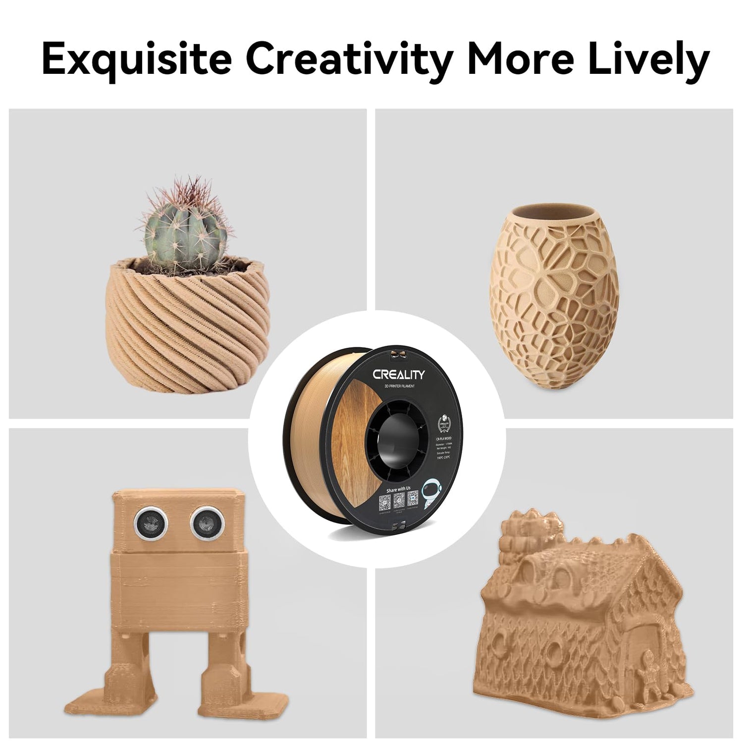 - Flowing Art Unlimited Imagination: 3d printer filament wood for good fluidity, wood pla filament 1.75mm for great creation. Creality wood pla for smooth feeding, pla wood for clog-free, to create great printed model