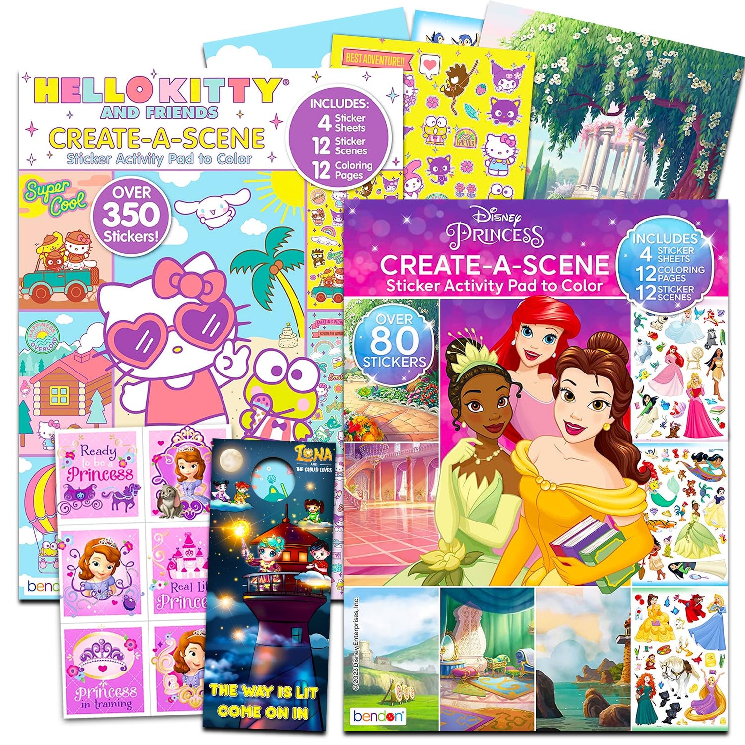 - Crenstone Exclusive Create a Scene Sticker Activity Books for Girls - Bundle with 2 Sticker Pads with 400+ Stickers Featuring Disney Princesses and Hello Kitty Plus Bonus Coloring Pages, More | Sticker Books for Girls 4-8.