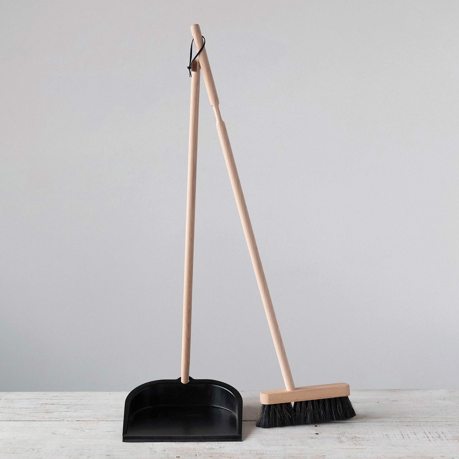 Creative Co-Op Beech Wood Broom & Standing Metal Dust Pan, Natural & Black