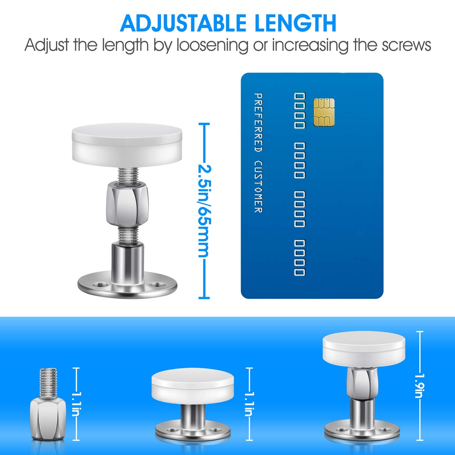 - ★ EASY TO INSTALL: Just uncover the sticker and paste it where you want, the super stickiness will makes it never slip, then adjust the length by loosening or increasing the screws, to make it firm. We included two additional free screws to facilitate your use of our products in more scenarios.