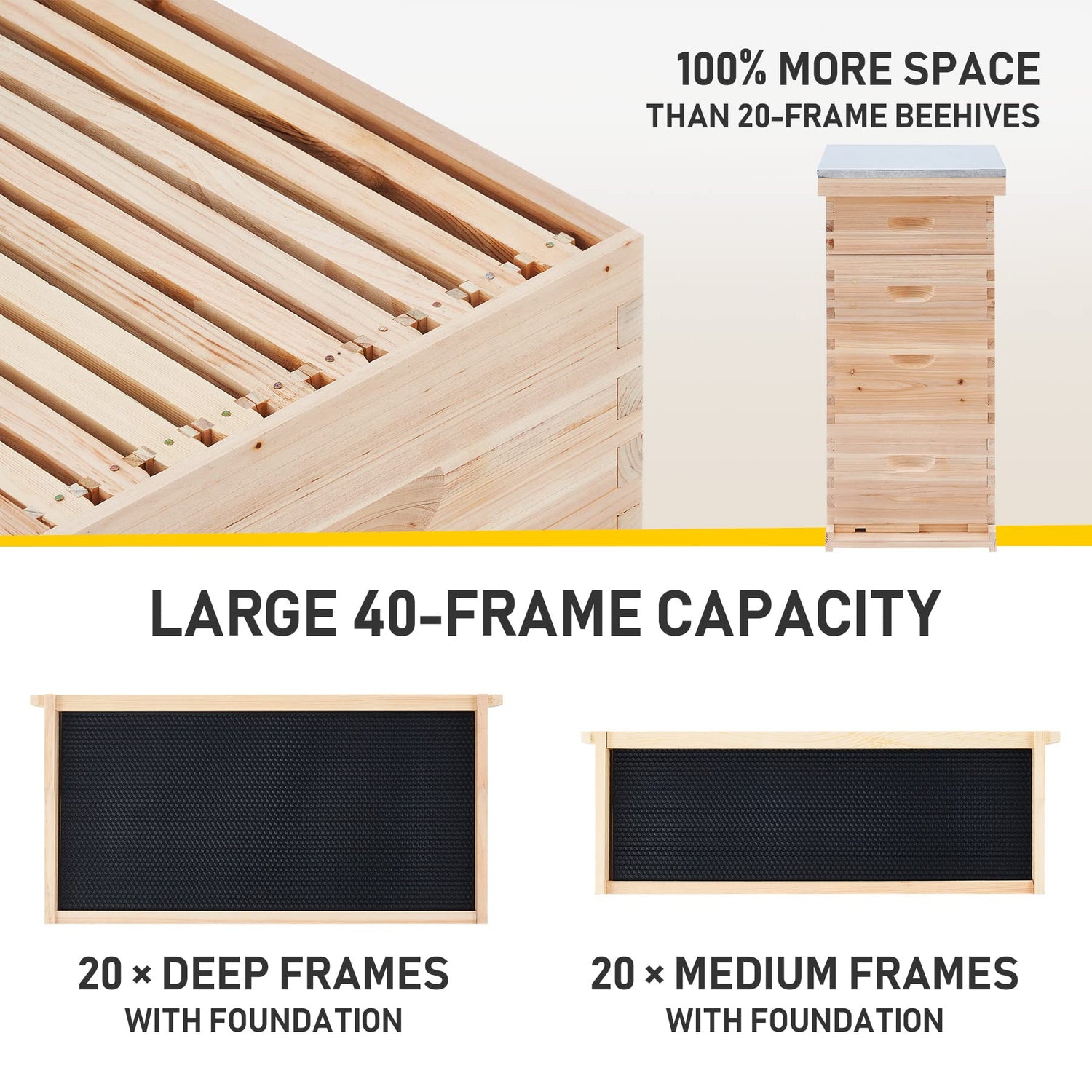 - USER-FRIENDLY DESIGN: This 4-layer beehive starter kit is designed with features such as a solid bottom board, widened entrance reducer, plastic queen excluder, and inner cover to make beekeeping convenient for beekeepers at all levels