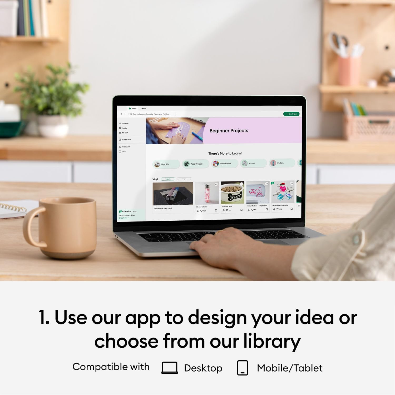 - ACCESS TO BEGINNER’S GUIDES, EXPERT-LED COURSES and WORKSHOPS – Build the skills to create w/ confidence w/ the Learning Plan built into Design Space upon registering your machine. We’ll walk you through everything you need to know to get started on day 1.