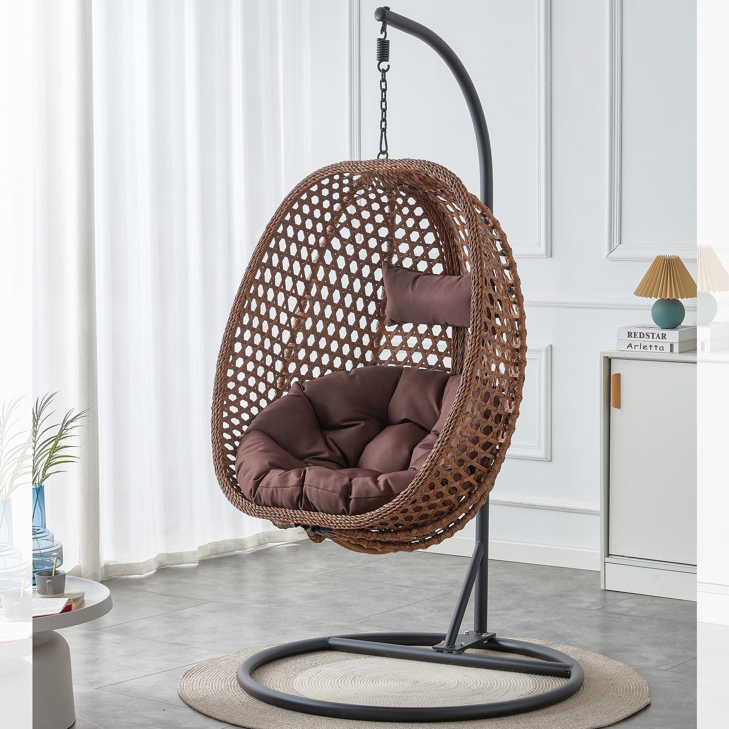- Sturdy Egg Swing Chair : This brown egg swing chair outdoor combines a heavy - duty, rust - resistant steel frame with PE rattan. The PE rattan resin wicker wrapping boosts its strength and durability, keeping it beautiful and sturdy for long