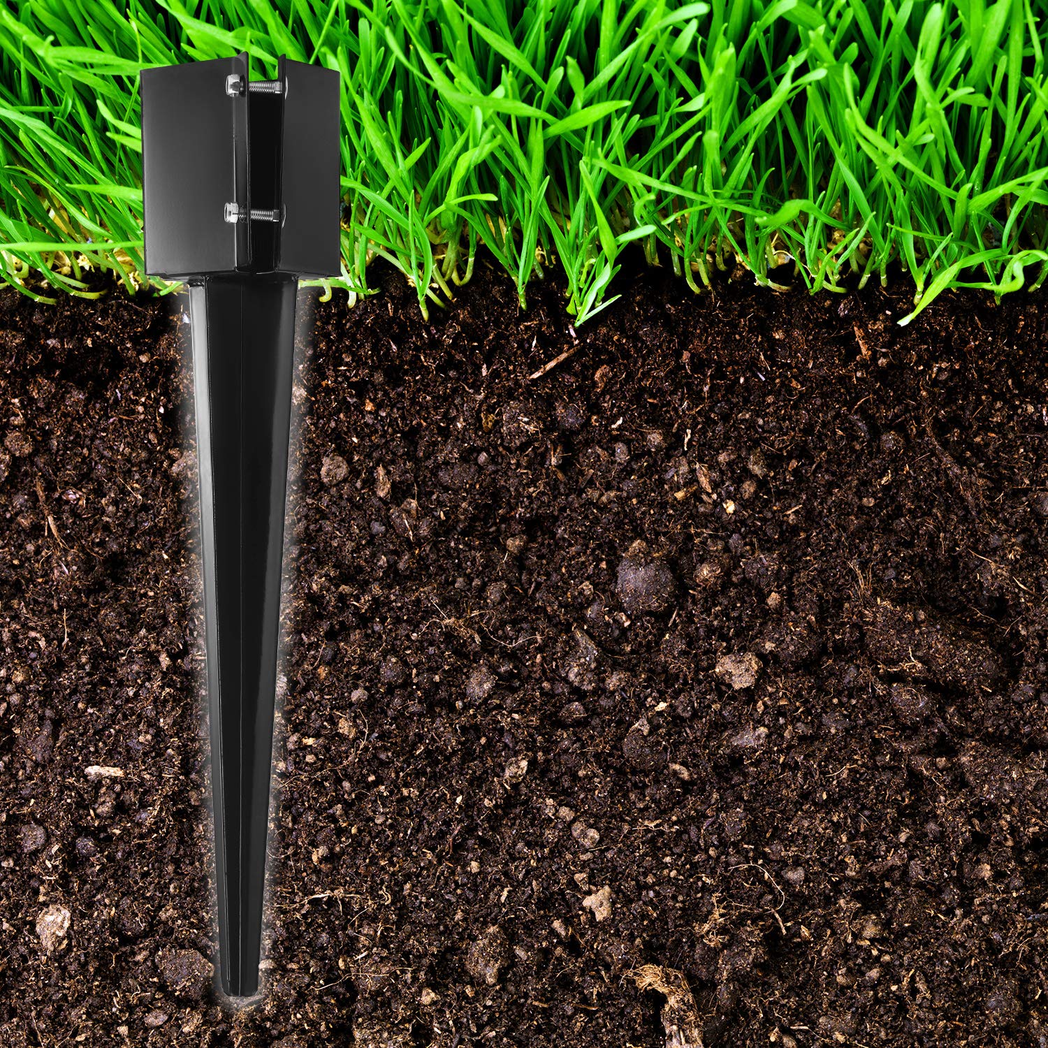 • Easy Installation : Totel length: 24”, fit 3.5” x 3.5” wood posts without digging holes or pouring concrete. Take a scrap piece of wood to hammer the post anchor in the ground by using a mallet or a sledge hammer and it will drive the post anchor all the way in the ground.