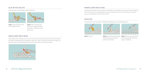 Get stitching―Use clear step-by-step instructions to review essential crochet techniques, including the magic ring and single and double crochet, as well as fun stitches like the picot.