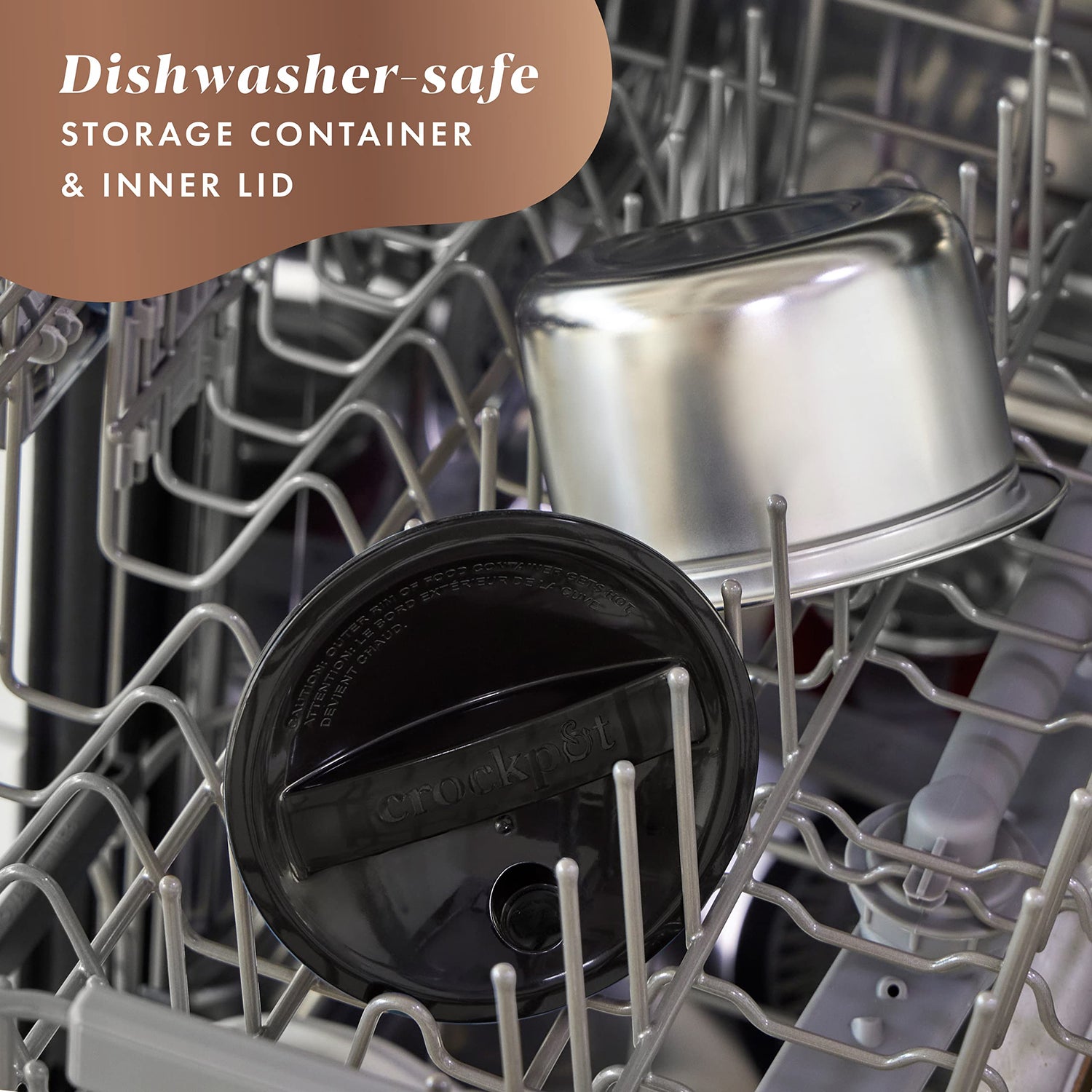 Details: The Crock-Pot Electric Lunch Box, a portable, easy-to-carry electric lunch box boasting a modern-vintage aesthetic with an elegant Black Licorice finish is perfect for on-the-go lifestyles. With its 20-ounce capacity, it is ideally sized for personal use, enabling you to carry and warm your favorite leftovers, soups, and meals wherever you are - be it the office, home, or traveling. The tight-closing lid ensures minimal spills, while its soft-touch coating, easy-carry handle, and detachable cord facilitate a hassle-free experience. Complementing its utility, the product offers easy maintenance with the inner container and lid being dishwasher-safe.