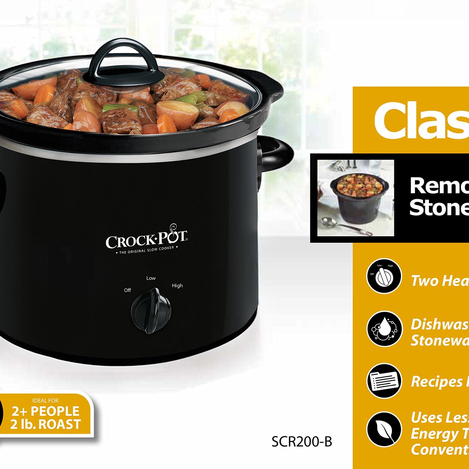 Details: From homemade meals to delicious dips and sides, the Crock-Pot 2-Quart Classic Slow Cooker makes it easy to feed friends and family. Choose from 3 heat settings—high, low, and warm—for cooking flexibility and control with whatever you’re making. The small slow cooker has a 2-quart capacity that feeds 2+ people and is perfect for making small meals or dips. Use the manual warm setting to keep food warm while you are serving, or for heating up leftovers. The removable stoneware is oven-safe up to 400 degrees F, so you can put it in the oven to add a delicious finishing crisp to your favorite meals. When cooking is done, both the lid and stoneware can be placed in the dishwasher for easy cleanup. For moments, memories, and meals worth sharing, make it with The Crock-Pot Brand!