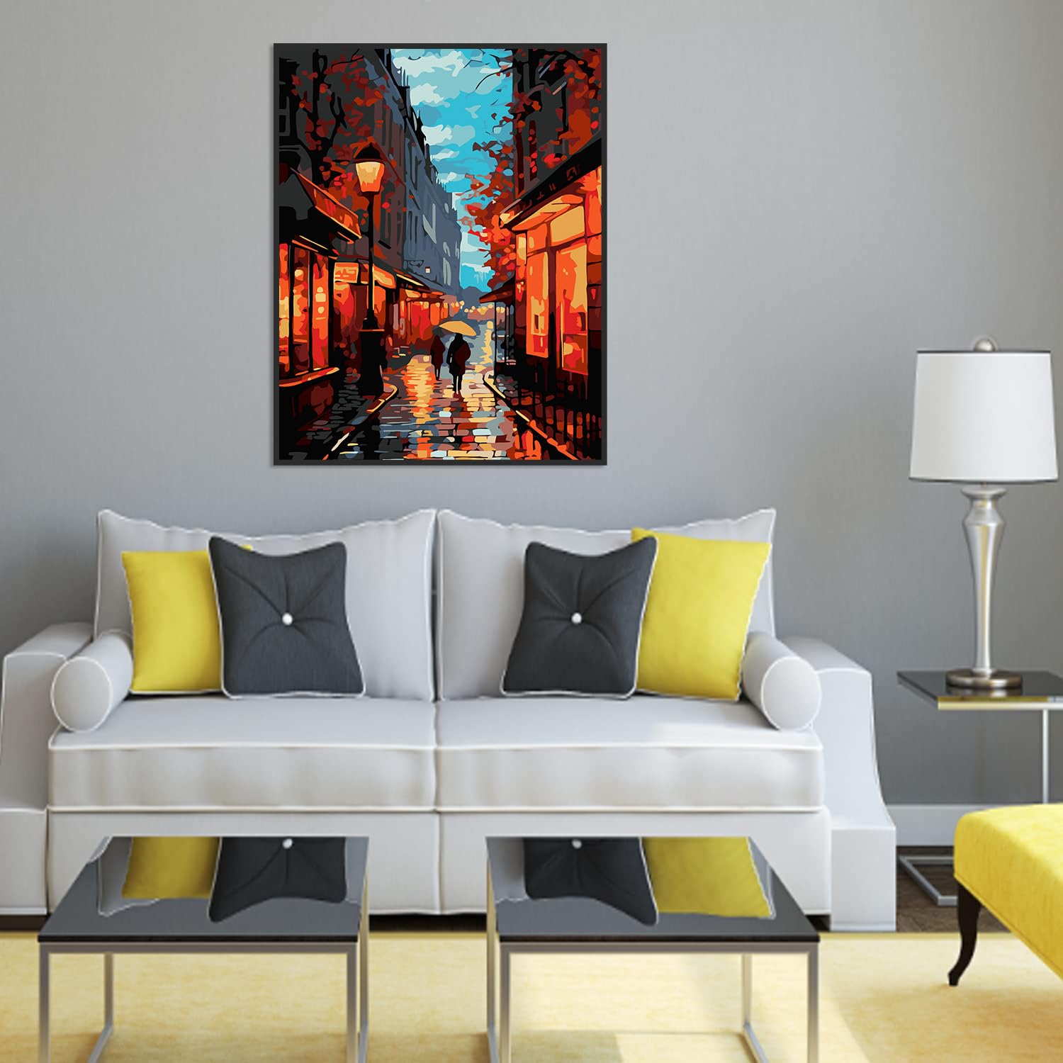 - WHAT WILL YOU GET: The street landscape paint by numbers for adults includes pre-printed canvas (16" x 20") x 1, paints x 1 set, brushes of different sizes x 3, and hook x 1 set, making it simple to paint a beautiful landscape, Frameless