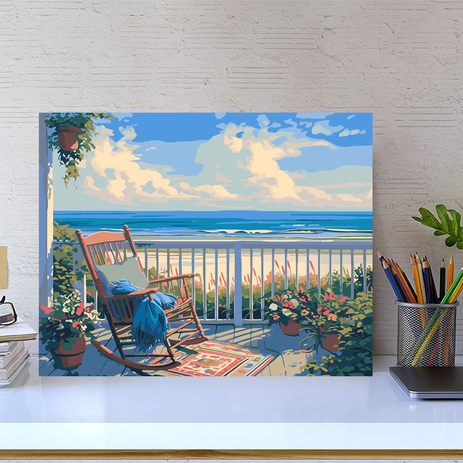 croshom Paint by Numbers Kit for Adults Beginner, Easy Paint by Numbers Kits for Adults, Suitable for Gifts and Home Wall Decor 16" x 20", Sea Landscape