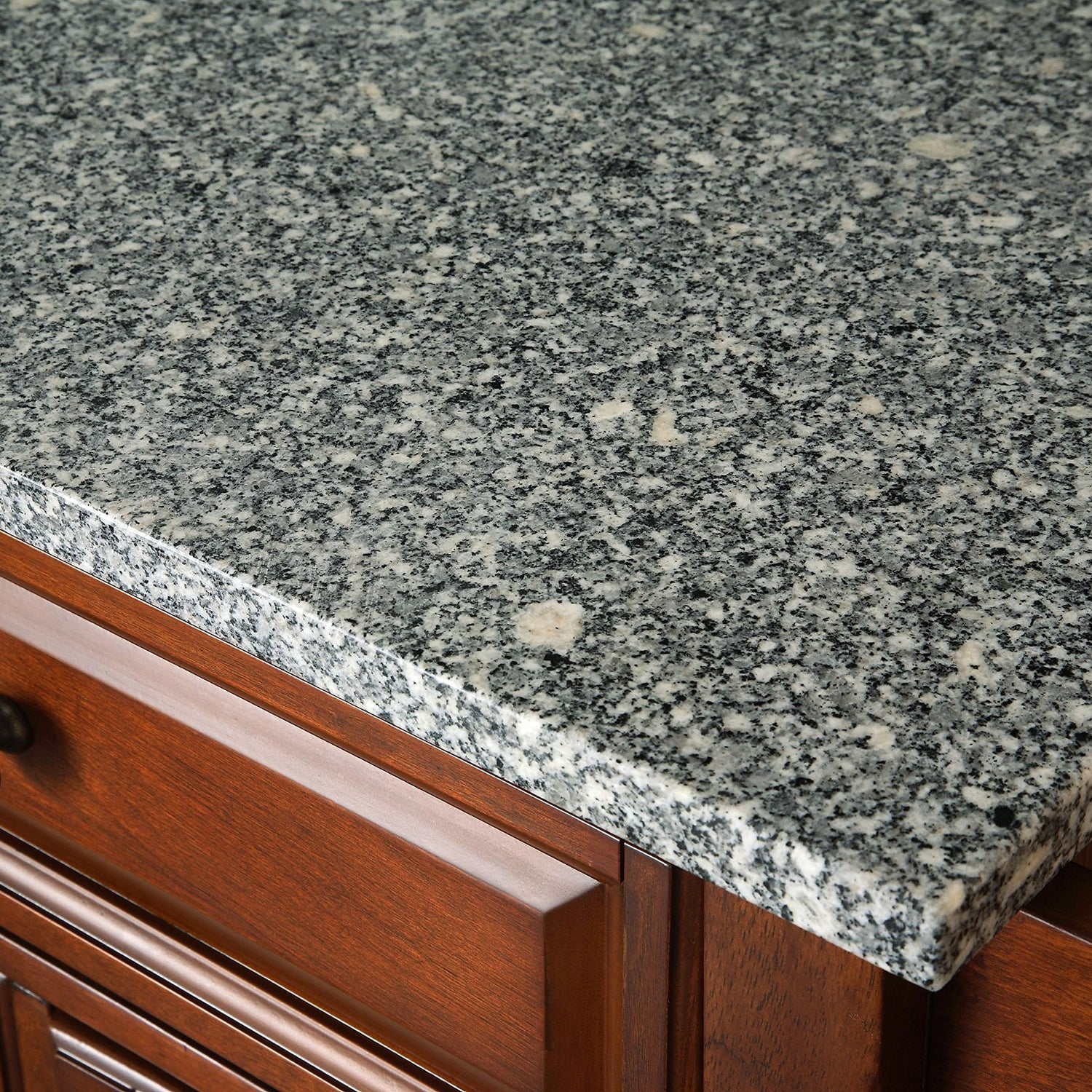 The Alexandria Full-Size Kitchen Island adds enduring style and storage to your kitchen. Featuring three cabinets, each with an adjustable shelf, this island can easily store pots, pans, and small appliances. Two large drawers keep small items like utensils and dishtowels close at hand, while the built-in spice rack and paper towel holder keep your counter space free of clutter. With a beautiful granite countertop and classic bun feet, the Alexandria Full-Size Kitchen Island is a welcome addition to your kitchen space.