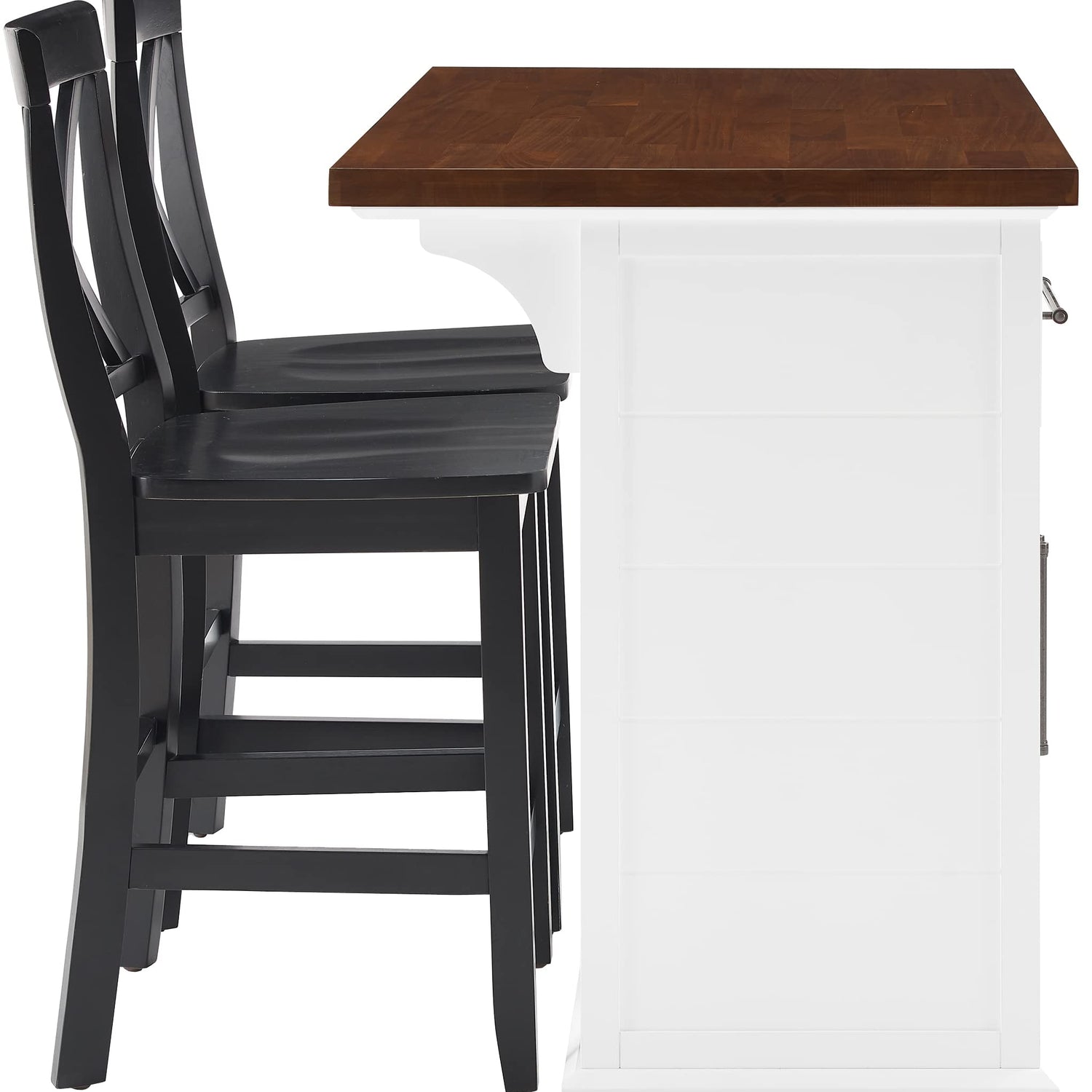 Crosley Furniture Bartlett Kitchen Island with Wood Top and X-Back Stools, White/Black