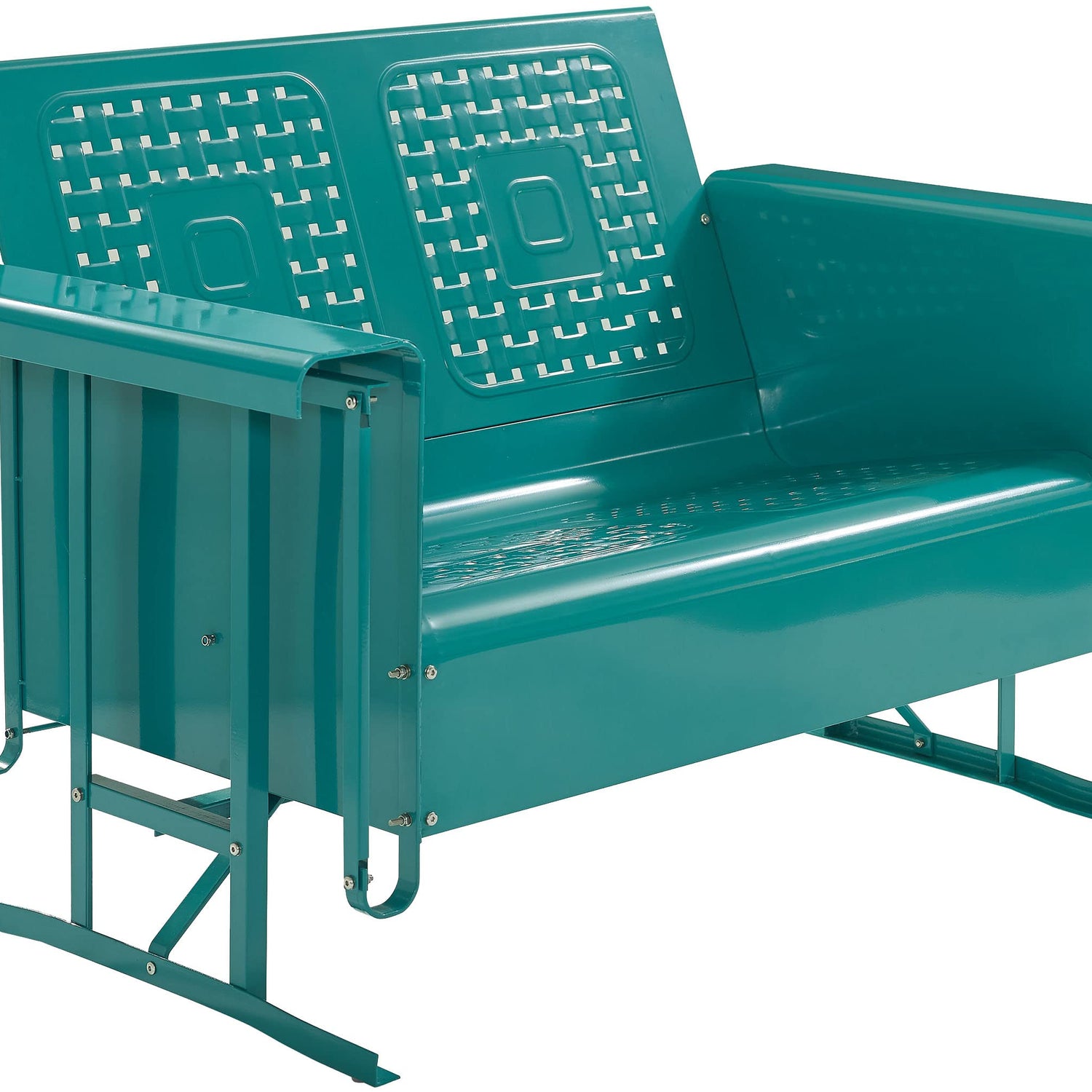 Crosley Furniture CO1024-TU Bates Retro Metal Outdoor Loveseat Glider, Turquoise Gloss
