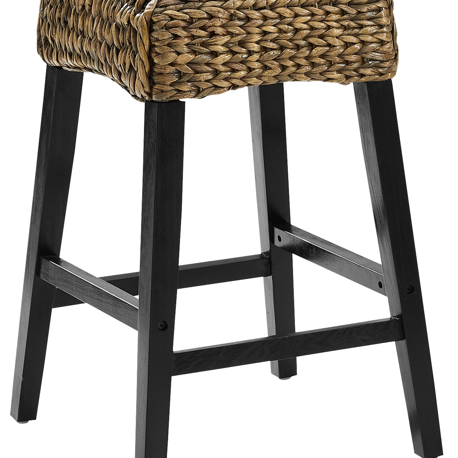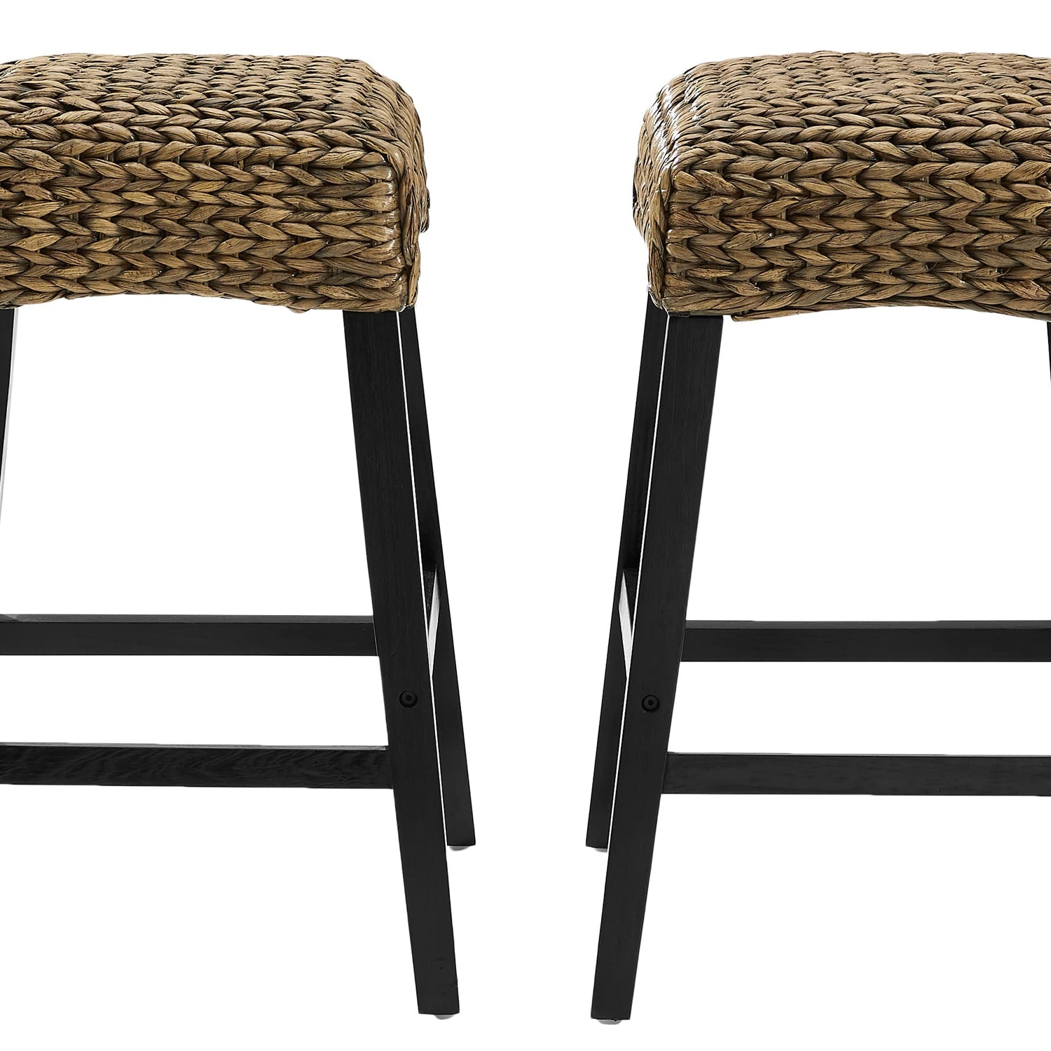 Details: Add texture and warmth to your dining room or kitchen with the Edgewater 2pc Backless Counter Stool Set. With a seat covered in beautiful woven seagrass, this stool set brings a rich, natural vibe to any indoor setting. Durable wooden legs provide sturdy support, while reinforcing crossbars also act as footrests. Slide the Edgewater counter stools up to your breakfast bar or counter height table for a relaxed dining experience.