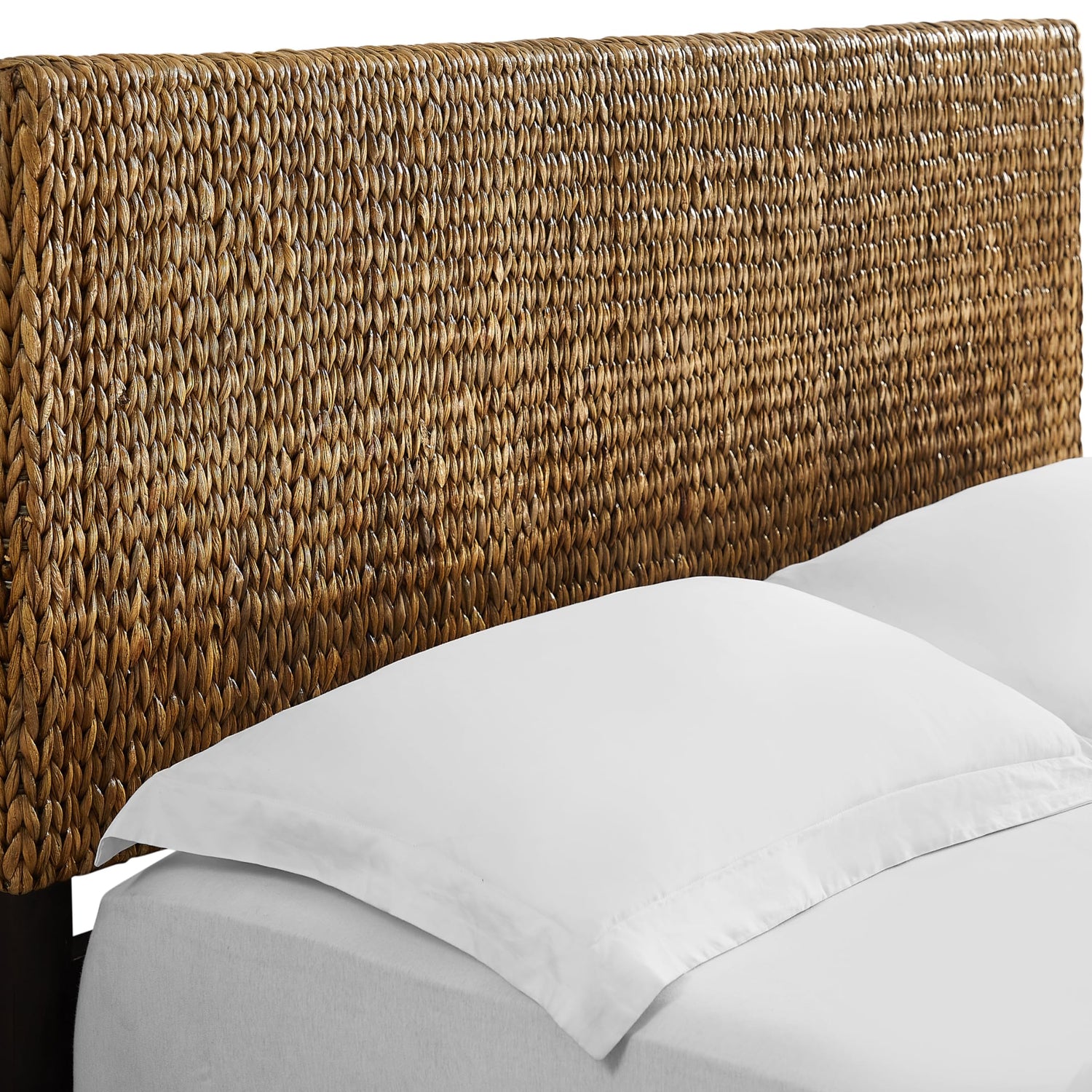 • Headboard is covered in handwoven natural water hyacinth seagrass