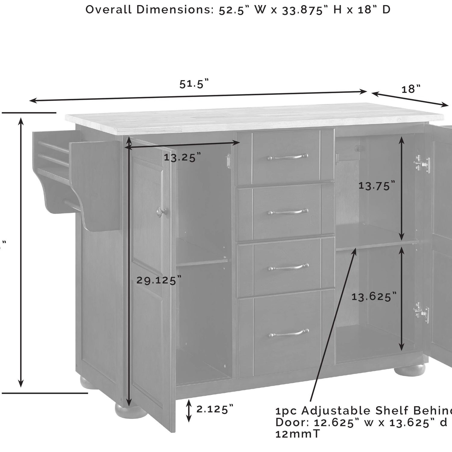 • AMPLE STORAGE: Two storage cabinets with magnetic closures and adjustable shelves provide space for kitchen essentials. There are also four drawers with metal glides for utensils and accessories. Both the shelves and drawers have 15-lb weight limits.