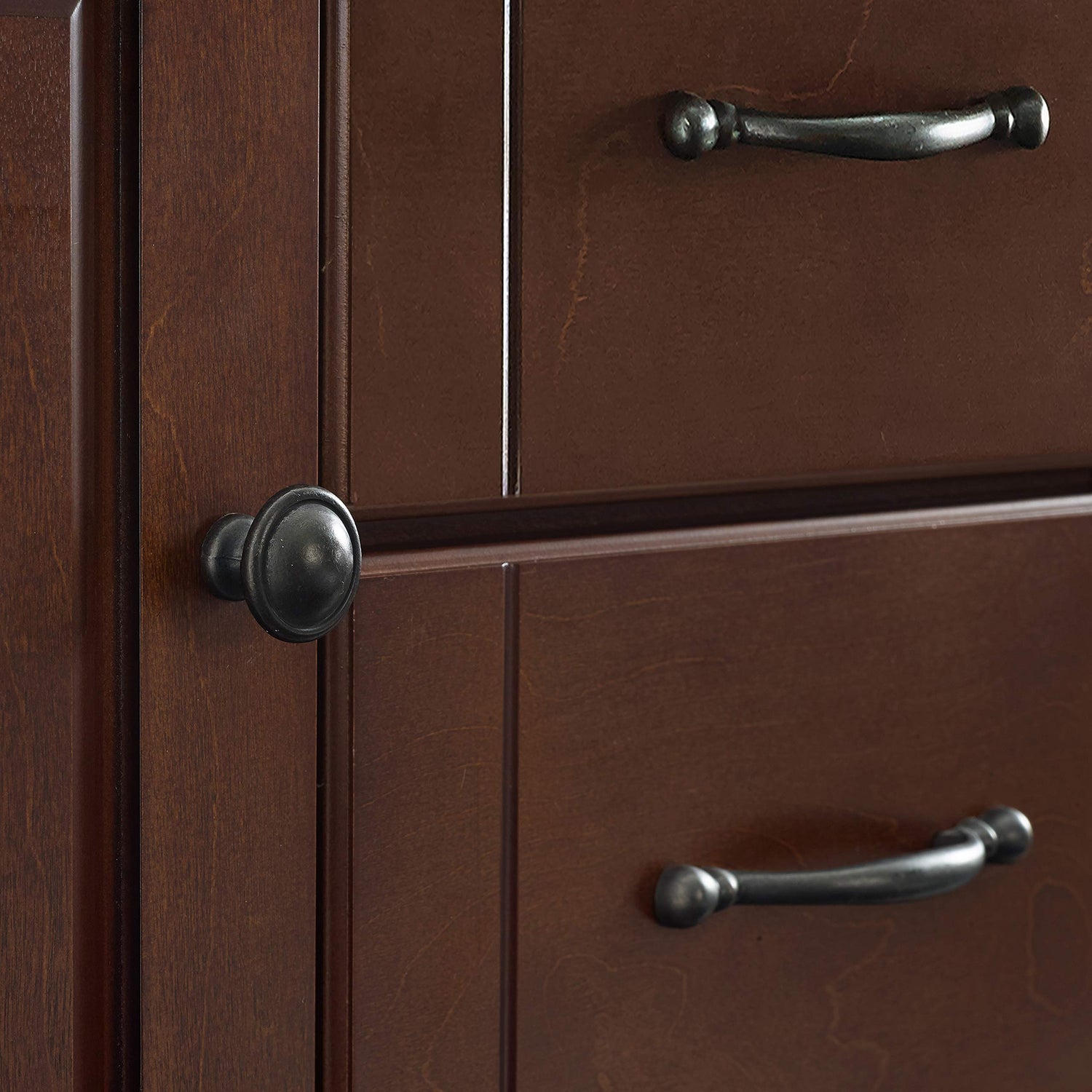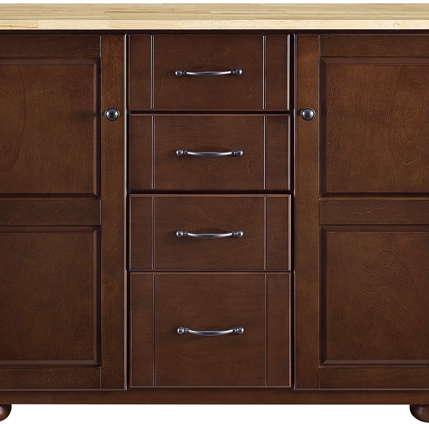 • TRADITIONAL CHARM: This kitchen island features a mahogany base and a solid wood top with a natural finish. The genuine metal hardware in antique brass and beautiful raised panel doors pair well with modern farmhouse decor.
