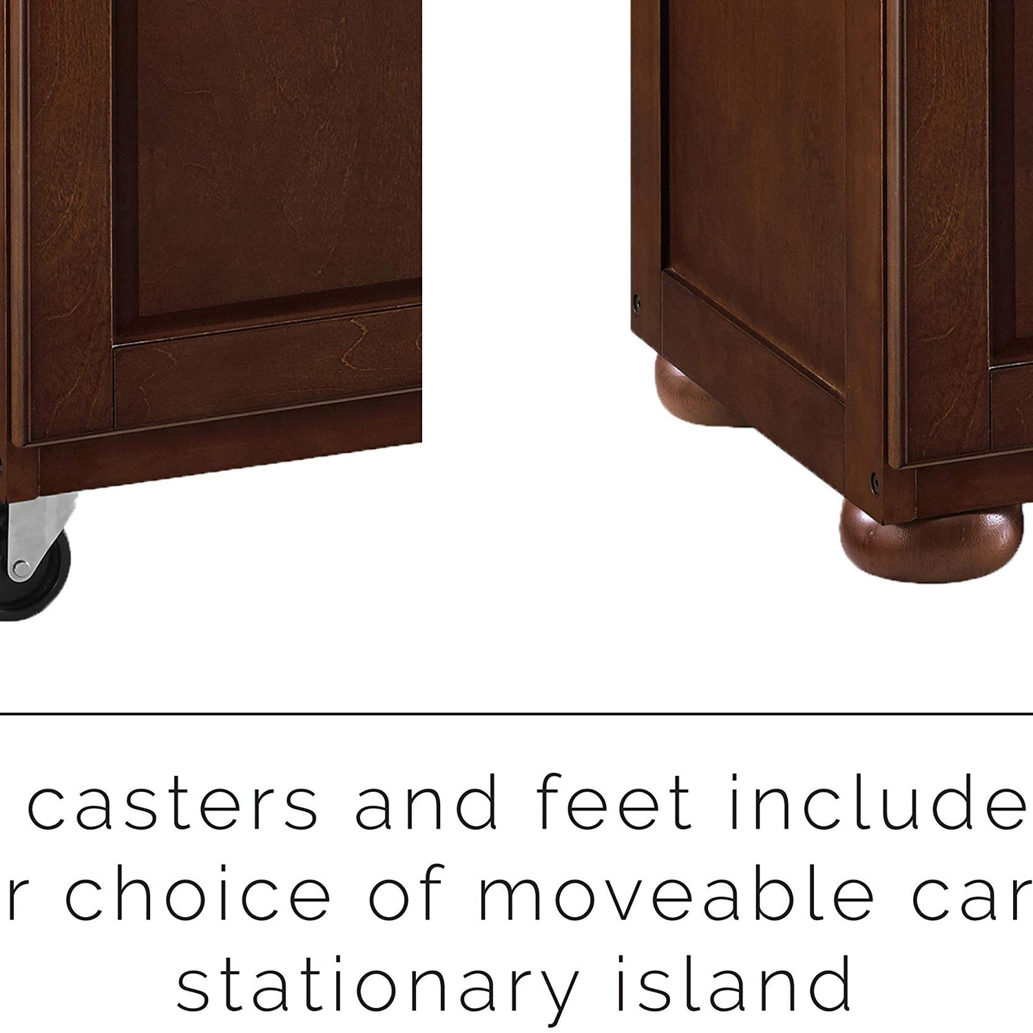 • MULTI-PURPOSE DESIGN: This rolling kitchen island can be used as a kitchen cart, microwave stand, or coffee cart. Both casters and bun feet are included, providing flexibility in mobility and style. The countertop has a weight limit of 100 lbs.