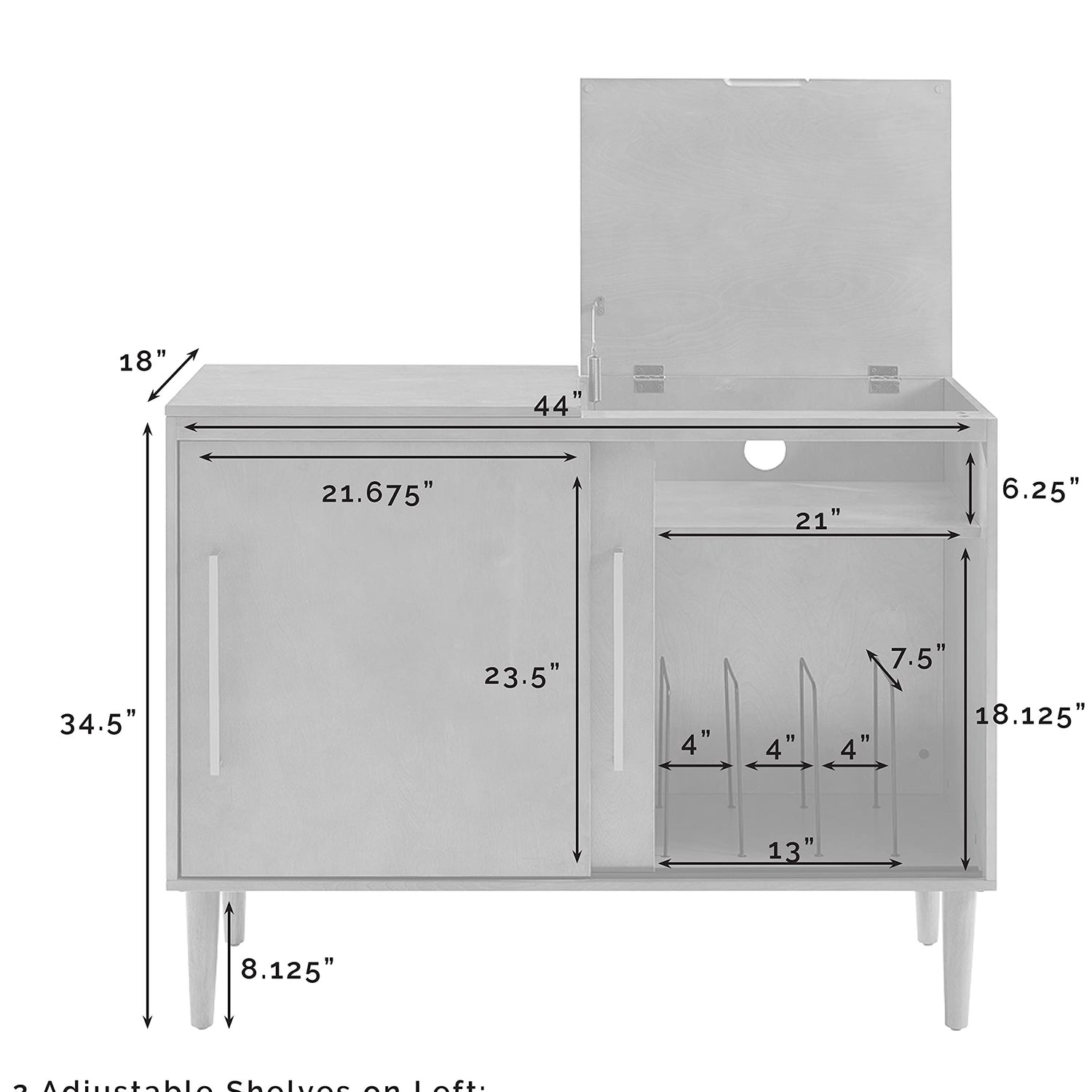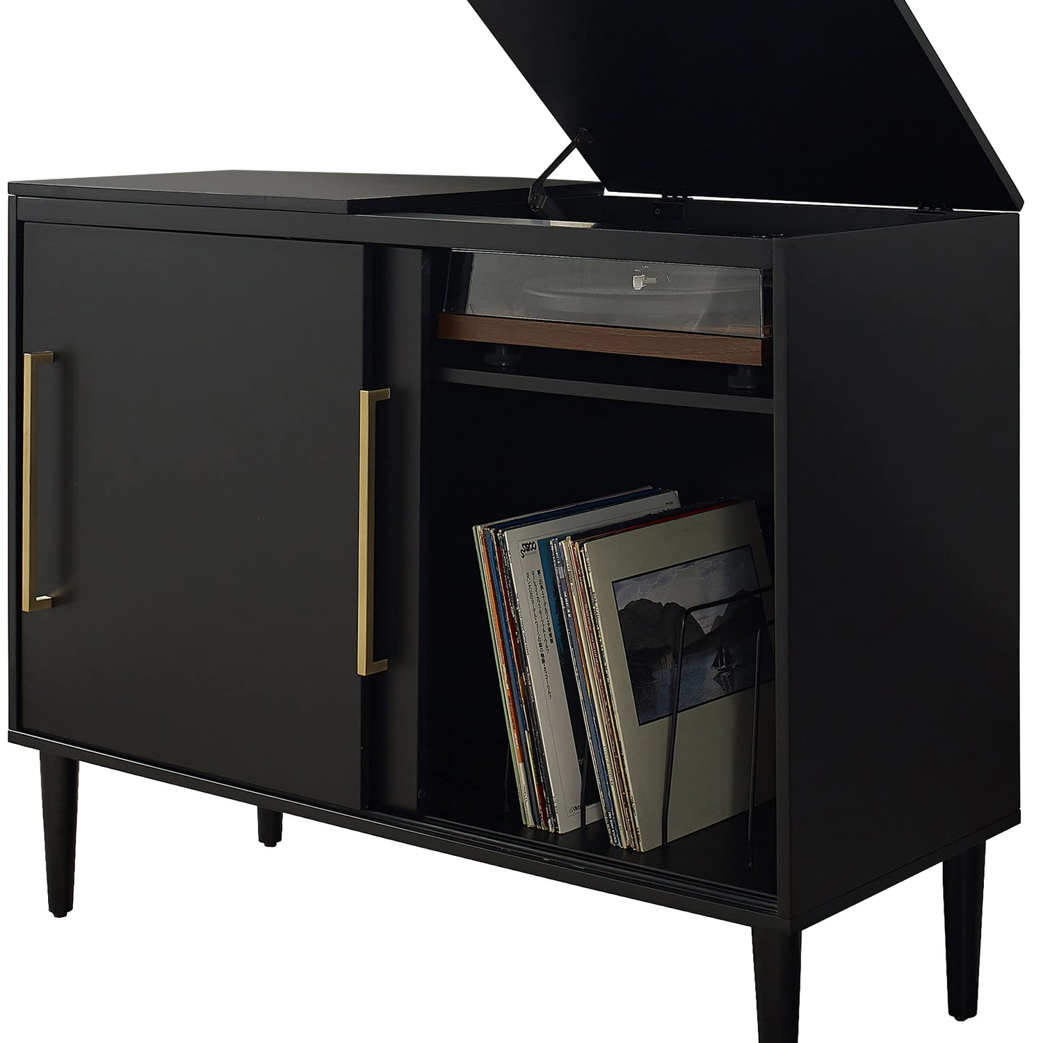 - FOR MUSIC LOVERS: Created with vinyl collectors in mind, you can store your favorite turntable in the hinged top compartment, plus records in the lower cabinet. Removable wire dividers keep your vinyl upright, providing space for up to 75 albums. The record storage weight capacity is 25 lbs