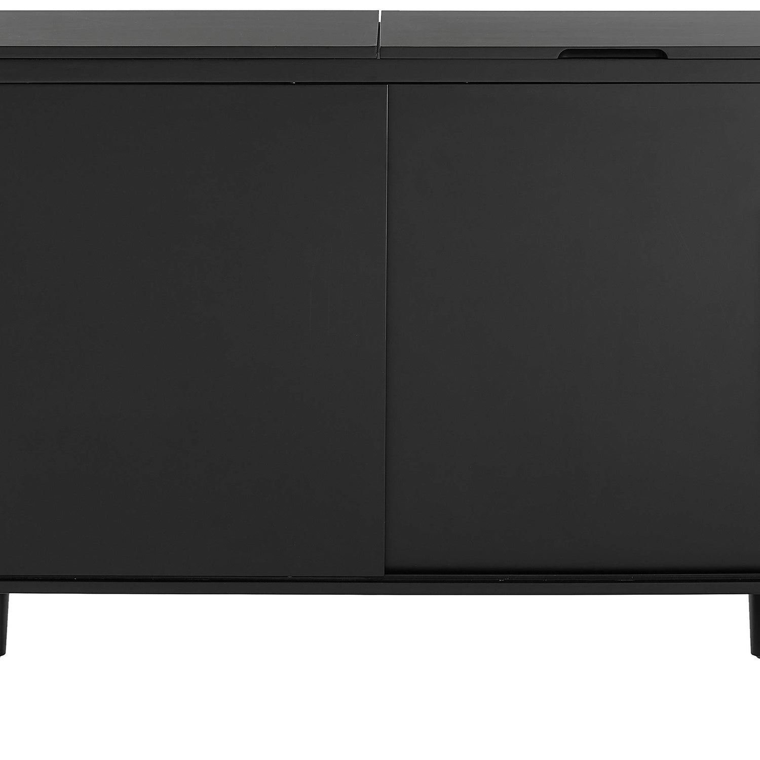 - MID-CENTURY MODERN: With its classic matte black finish and tapered legs equipped with adjustable levelers, this storage console captures the timeless appeal of mid-century design