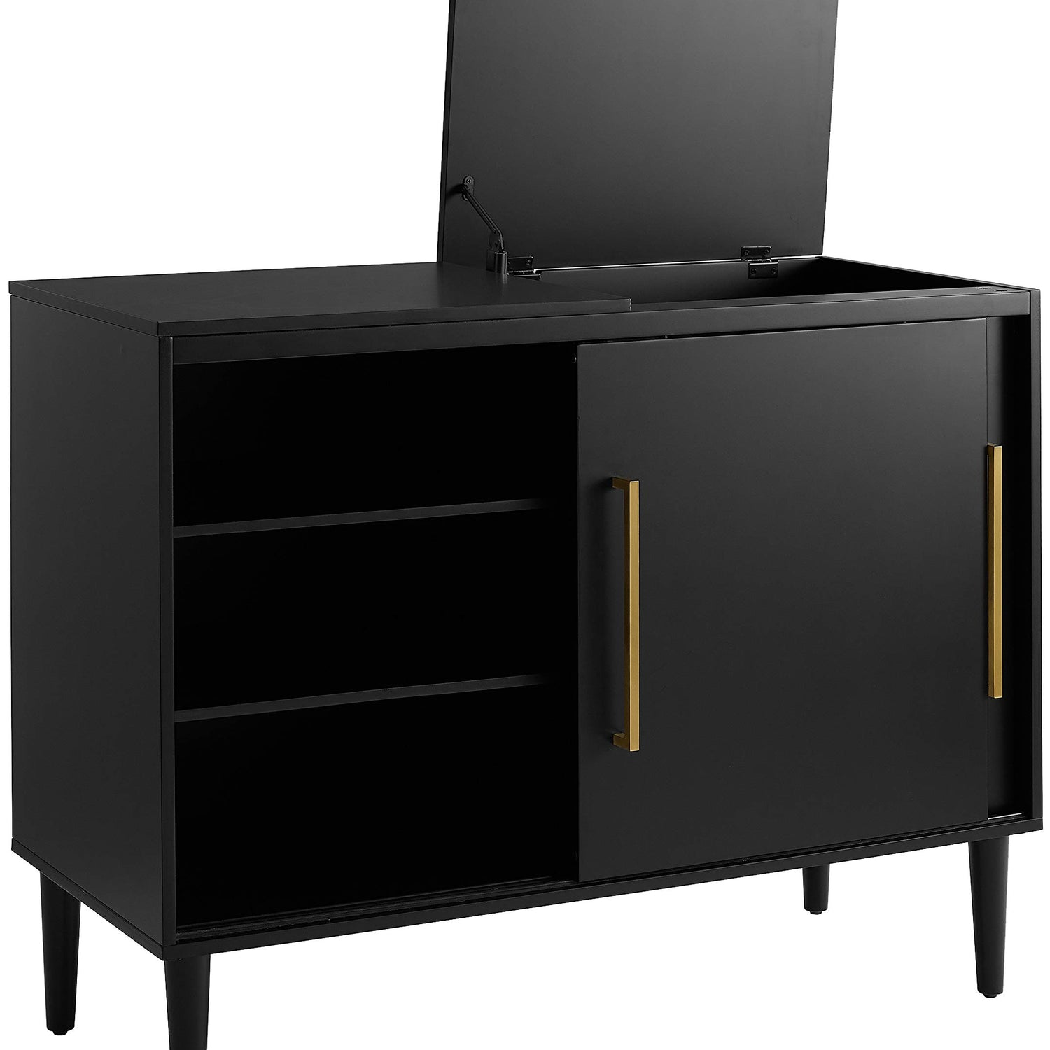 Crosley Furniture Everett Media Console and Record Player Stand with Storage for Vinyl Records, Matte Black