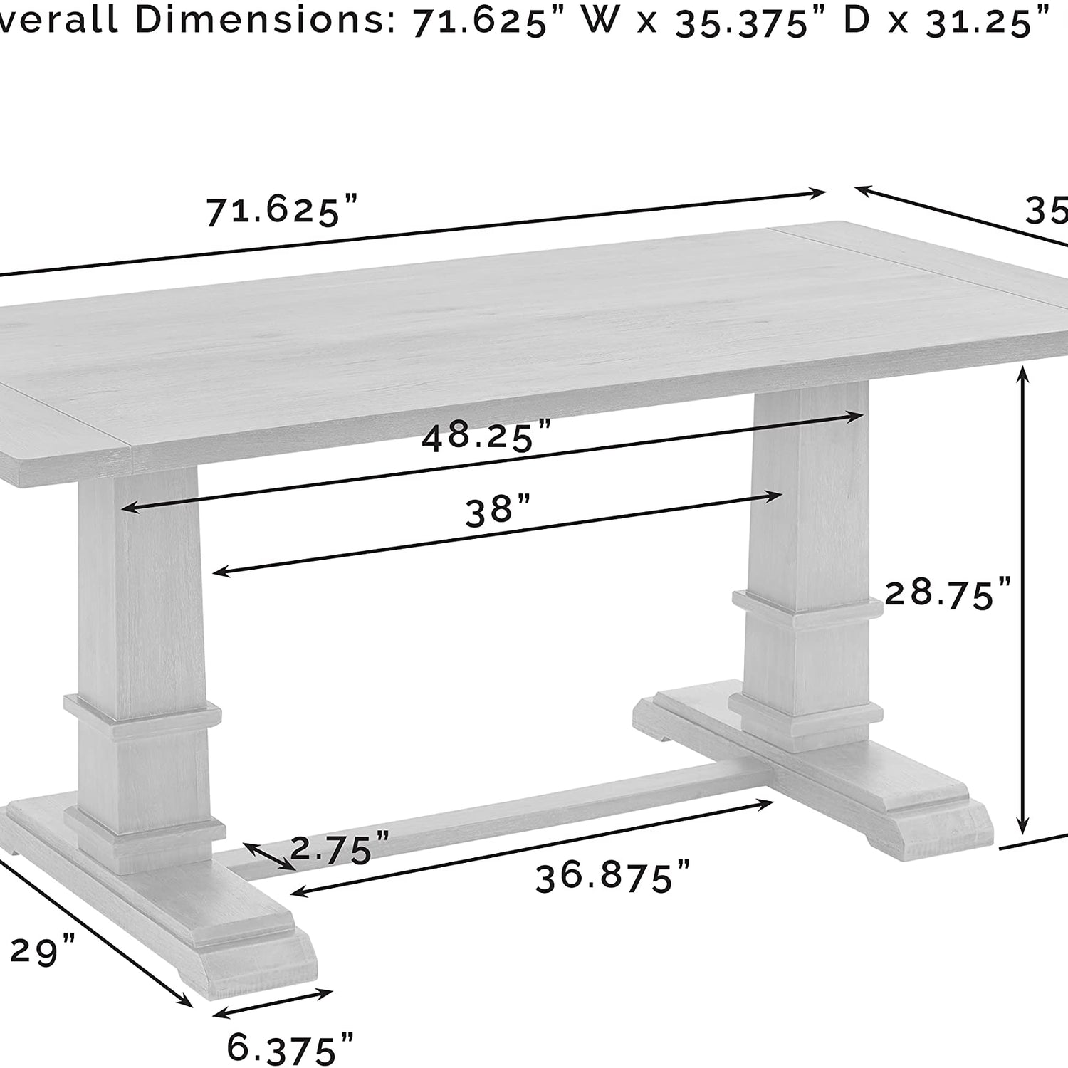 Details: Achieve the look of laid-back elegance with the Crosley Furniture Joanna Dining Table. Combining a beautifully rustic finish with a classic farmhouse design, this trestle table will be your go-to for large family gatherings. The substantial rectangle tabletop is enhanced by large pedestal columns with decorative trim on the trestle base. Ready to be the focal point of your dining room, the Joanna Dining Table can pair with a variety of dining chairs and seats up to 8 diners.