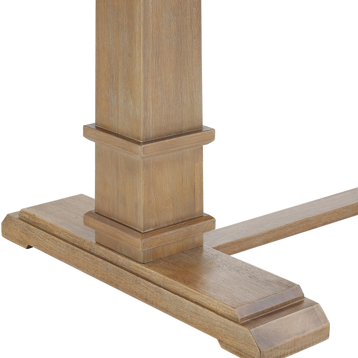 - DURABLE CONSTRUCTION: An English trestle base with large square columns supports the fixed rectangular top of this kitchen table, while adjustable levelers provide stability. The tabletop weight limit is 100 lbs.