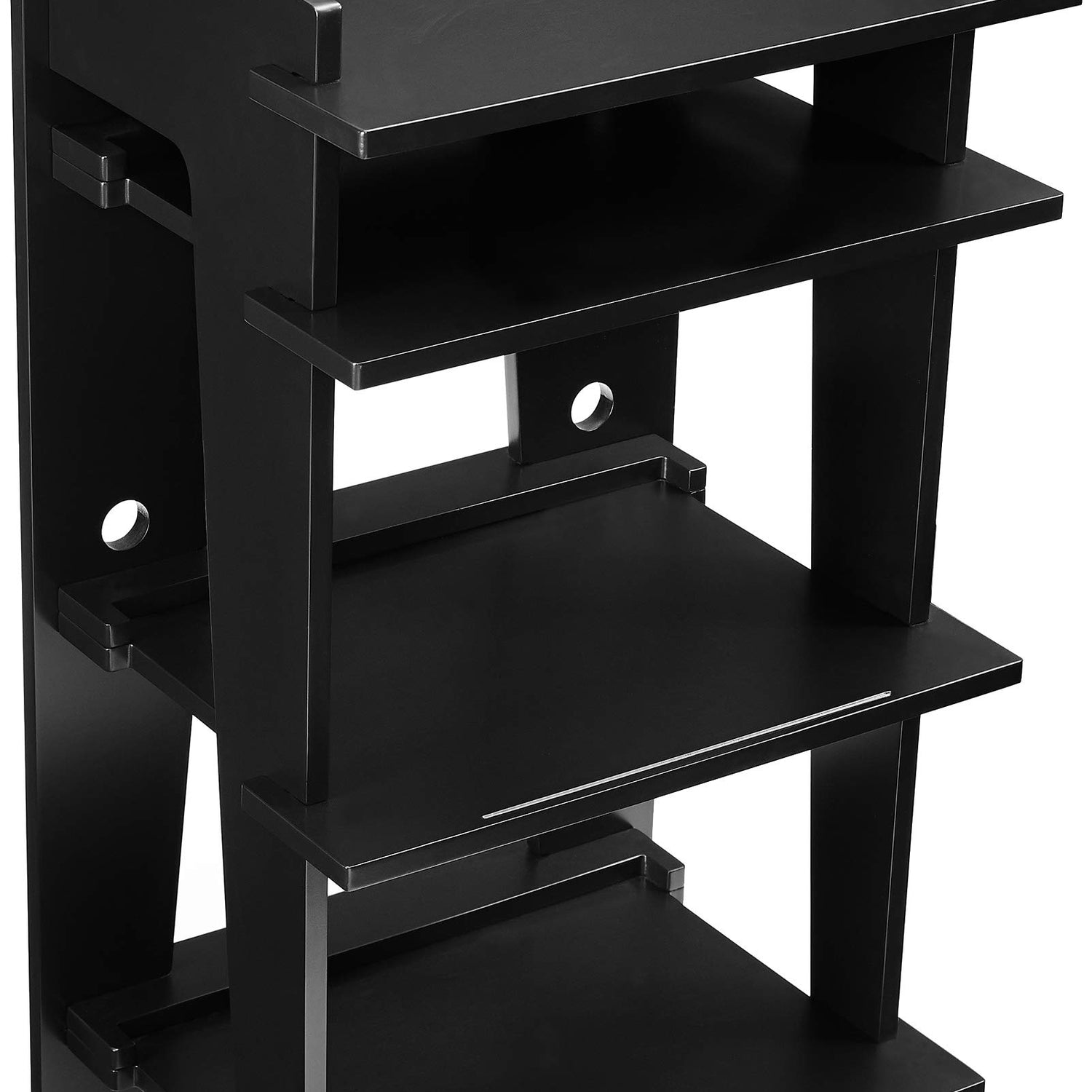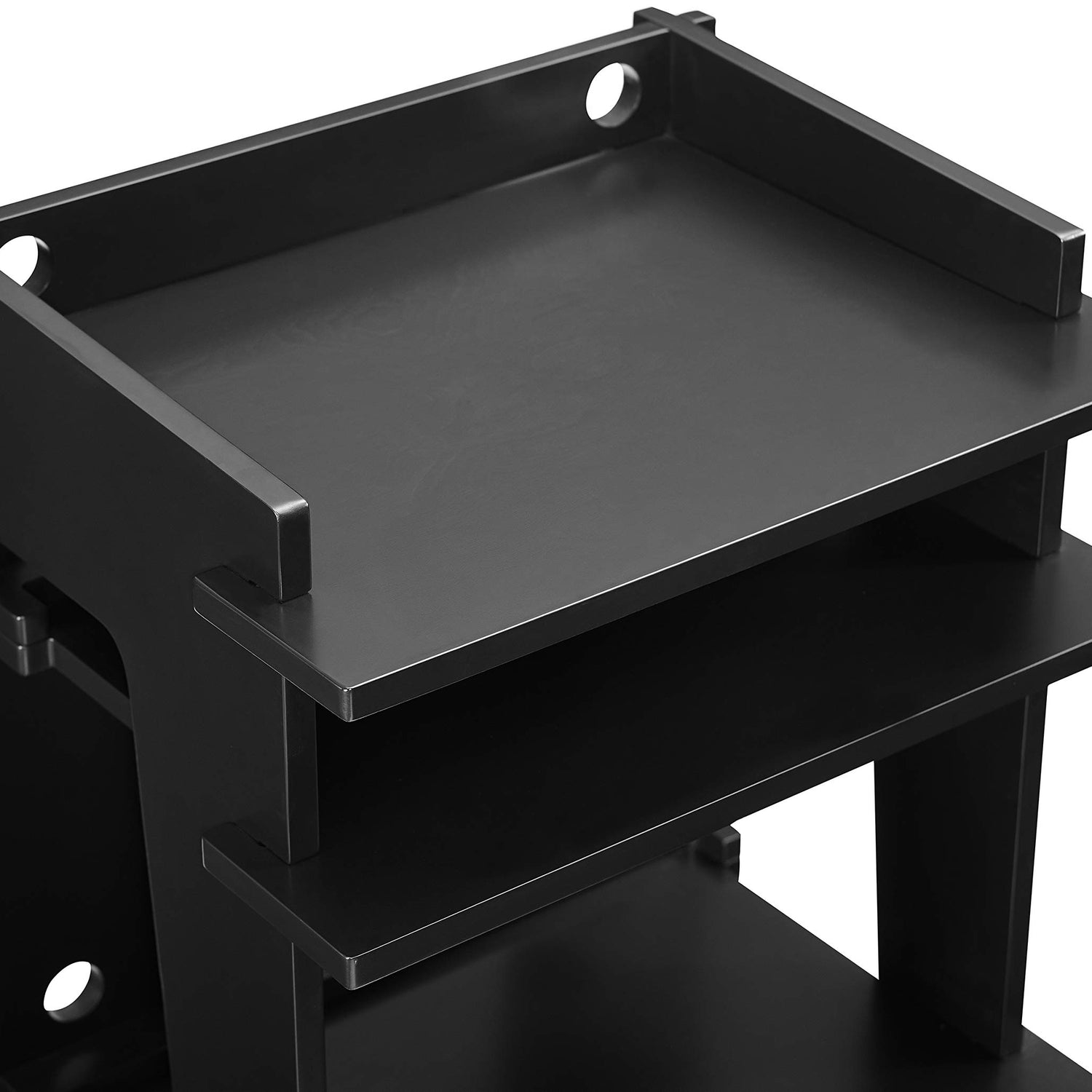 - Accessory shelf can hold an amplifier, vinyl records, or CDs and has a weight limit of 20lbs