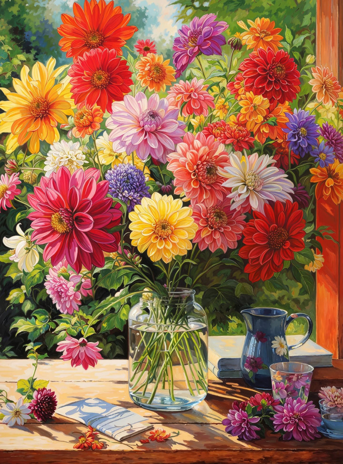 - Step into the riot of hues that is "Rainbow Dahlia Delight,"your exclusive pass to a vividly colorful realm, brilliantly encapsulated in a 1000-piece jigsaw puzzle for adults. Immerse yourself in the floral finesse of dahlias, each piece a burst of color, each hue a whisper of nature's diversity. This isn't just a puzzle; it's a visual feast, an ode to the splendor of blooms that challenges and charms with equal measure.