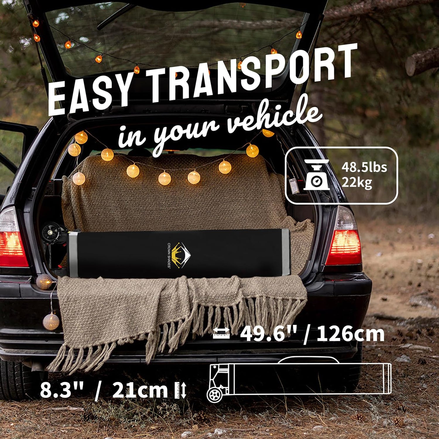 • CONVENIENT TRANSPORT & STORAGE: With a weight of just 48.5 lbs and the Sto'N Go bag featuring 4” enlarged wheels, this canopy is easy to transport and maneuver. Comprehensive accessories included for a complete setup experience.